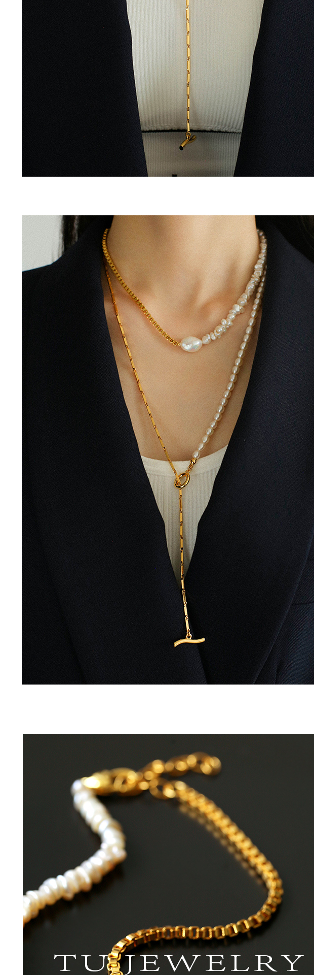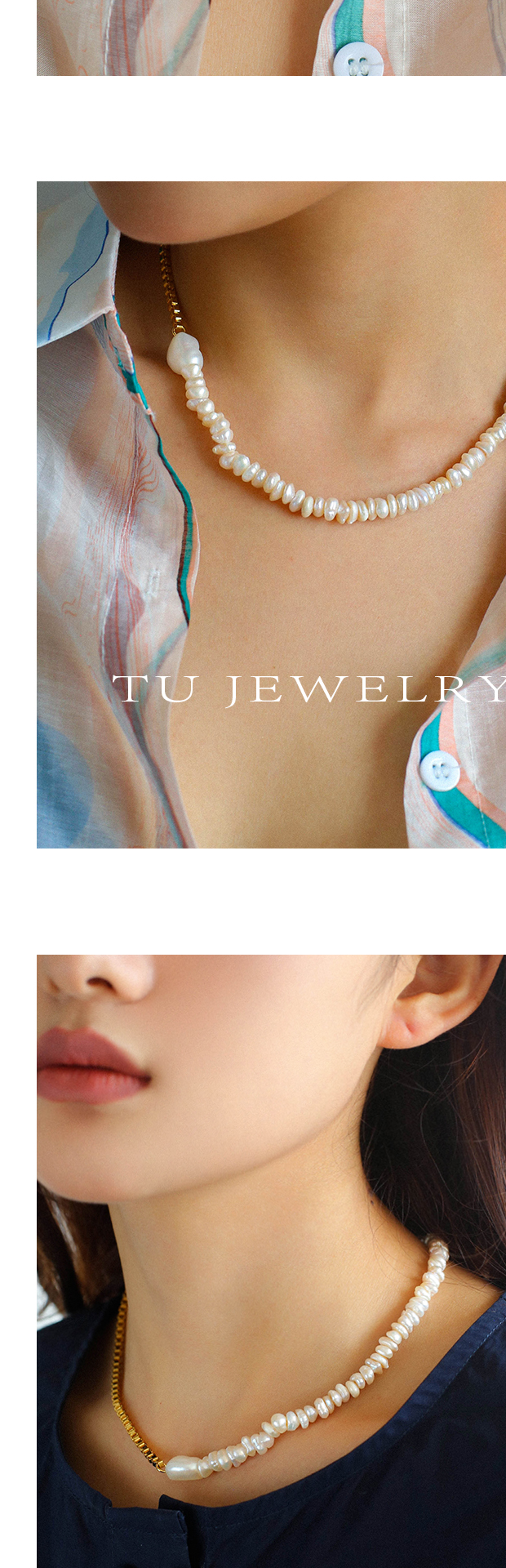 TU JEWELRY 天然珍珠拼接鏈條項鏈歐美ins小眾設計輕奢毛衣鏈頸鏈