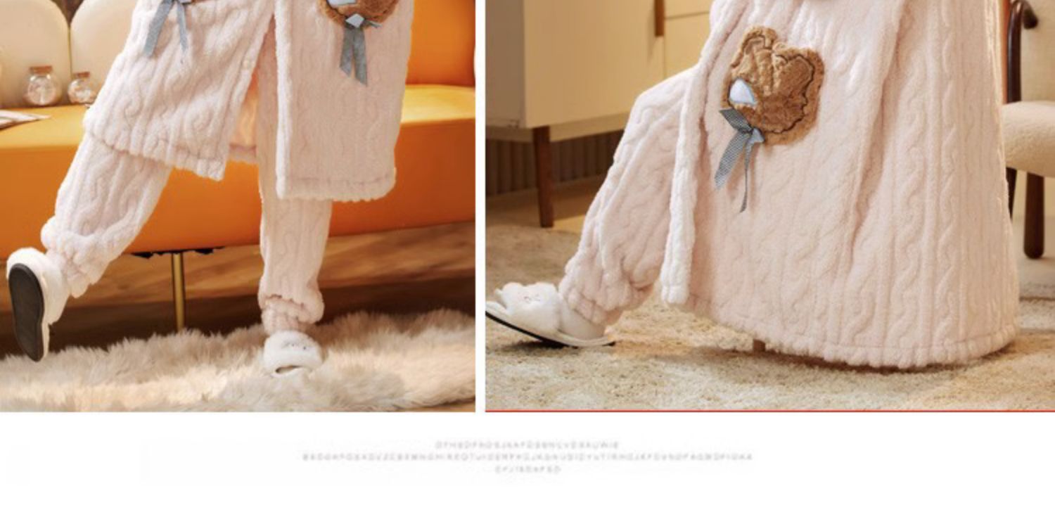 睡衣女秋冬季2023新款珊瑚絨三層夾棉睡袍加絨加厚保暖家居服套裝