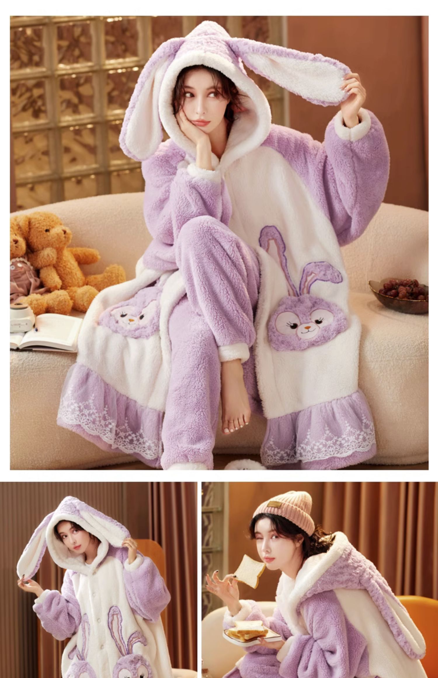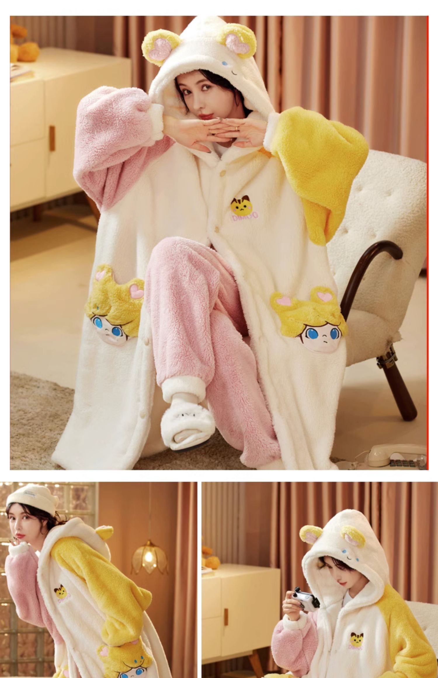 2022新款秋冬季珊瑚絨加絨卡通睡袍