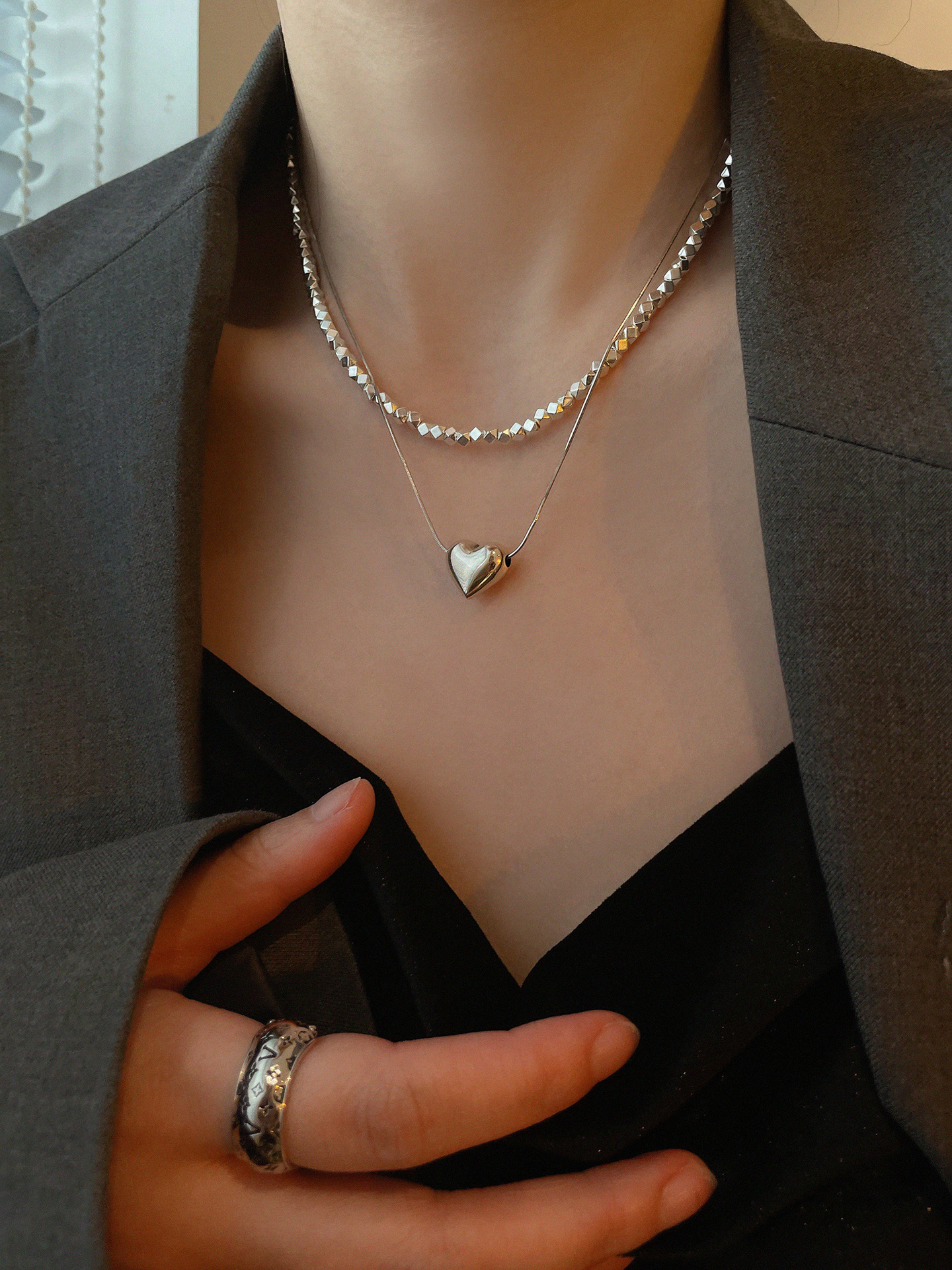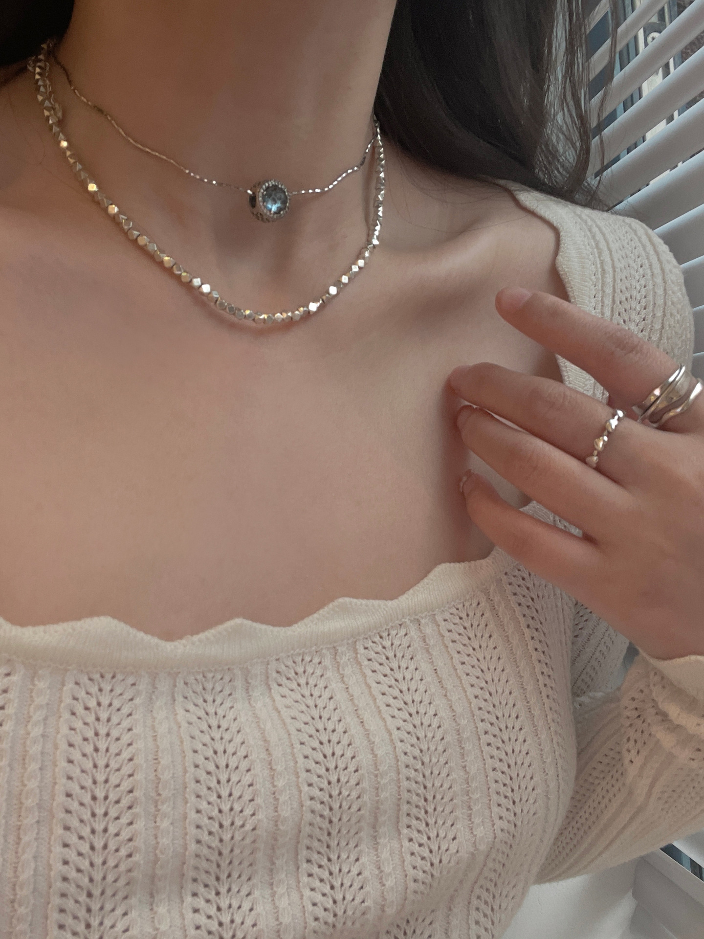 yooper純銀拼接雙層女方塊鎖骨鏈