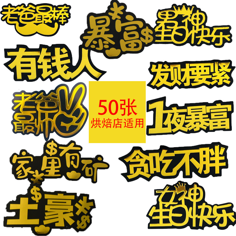 50枚燙金生日蛋糕裝飾插牌老爸最棒最帥男神女神生日快樂一夜暴富