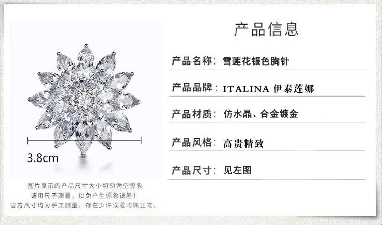 無瑕雪蓮仿水晶胸針輕奢百搭外套大衣開衫胸花女伊泰蓮娜爆款