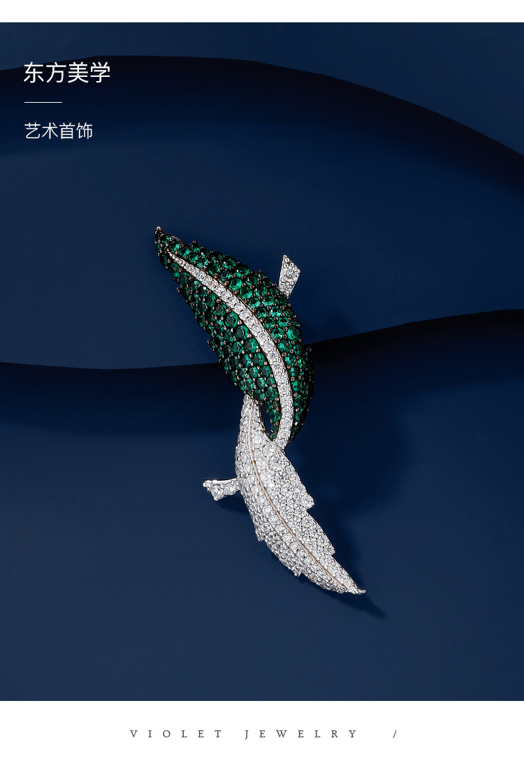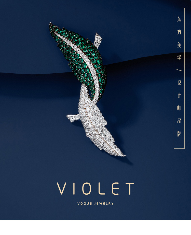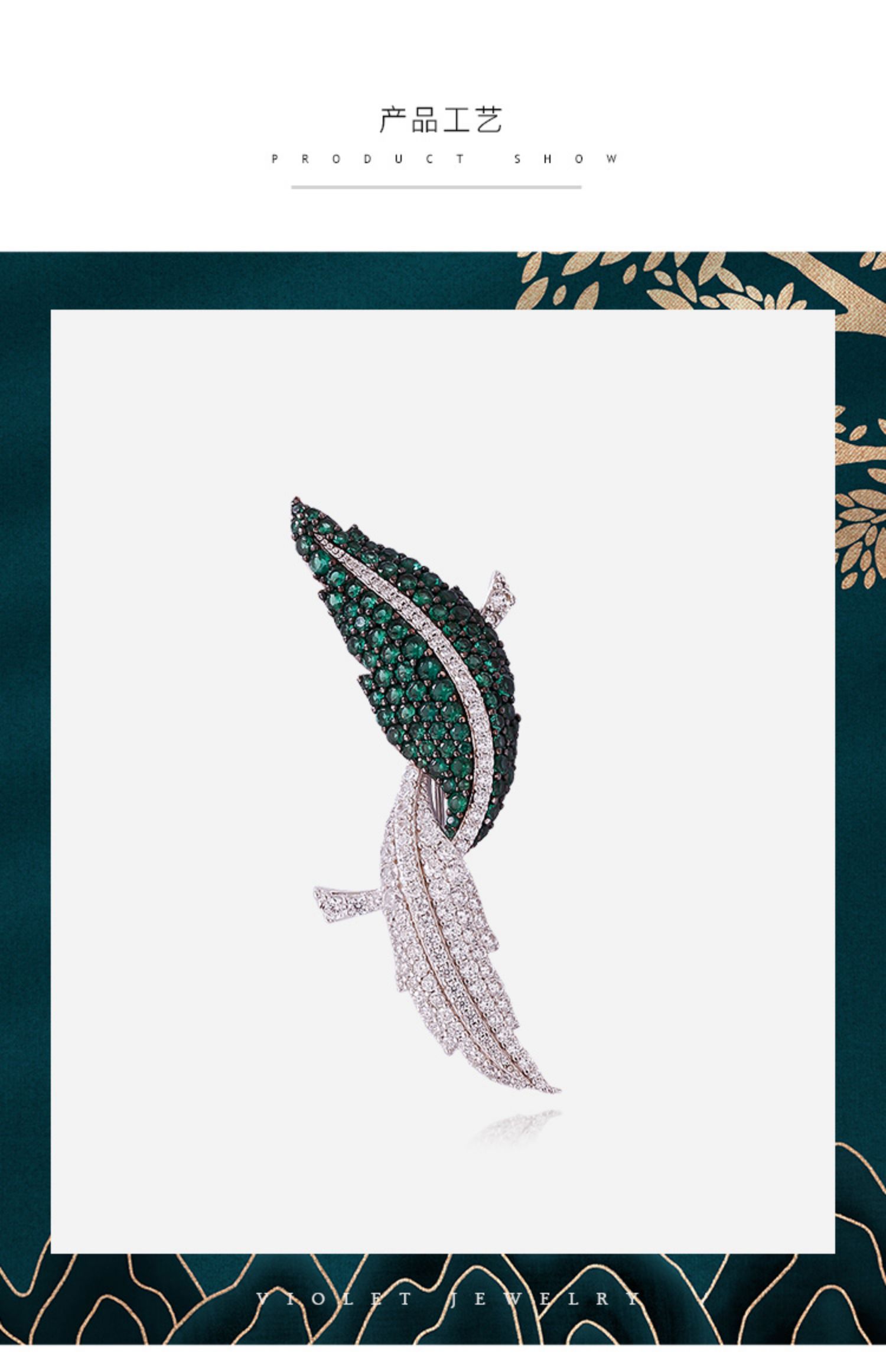 【紫羅蘭正版】綠卷羽S925純銀胸針高檔女精致綠色羽毛胸花別針