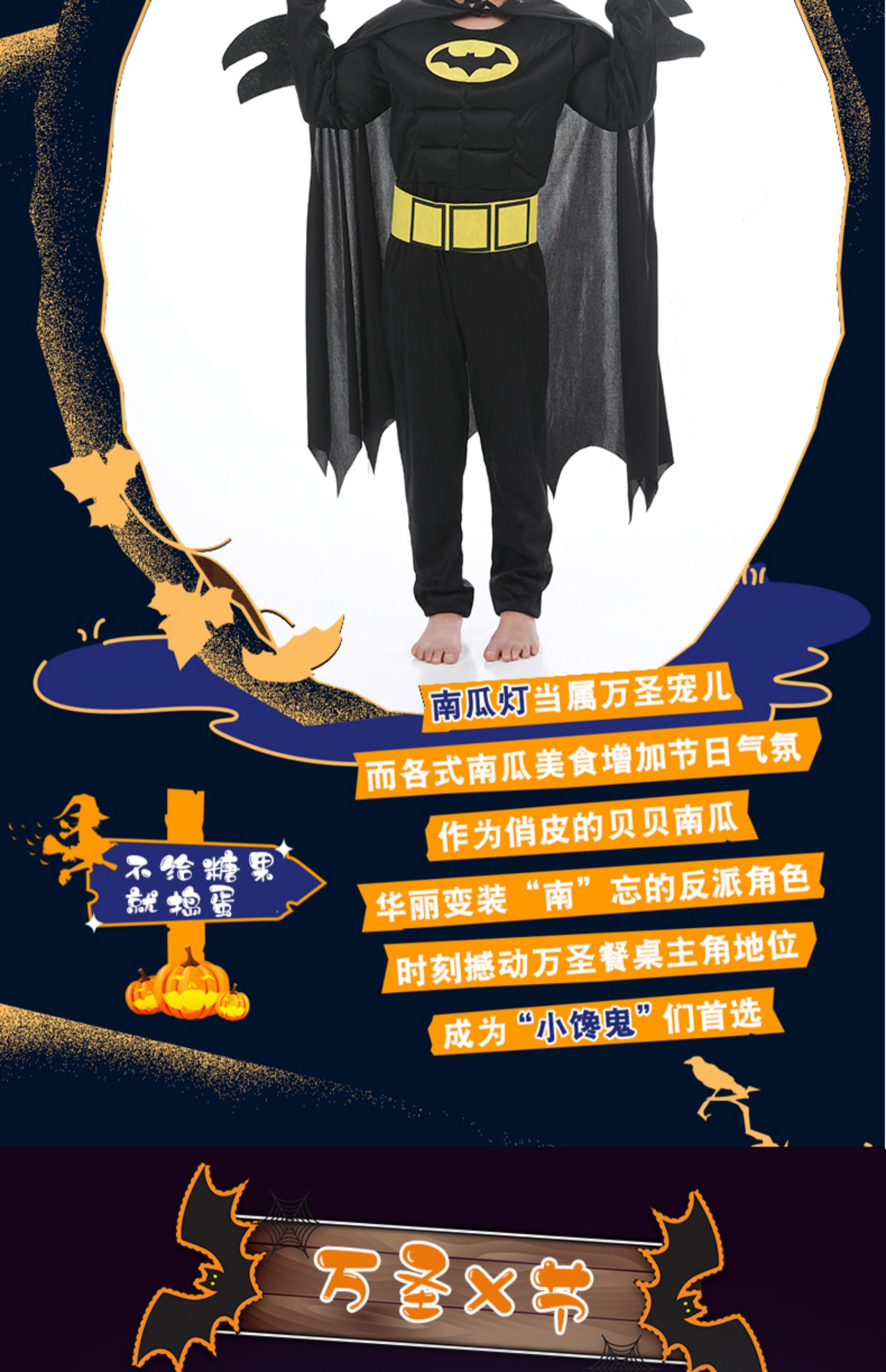 萬圣節兒童服裝男女童角色扮演南瓜服寶寶植物造型蝙蝠俠肌肉服飾