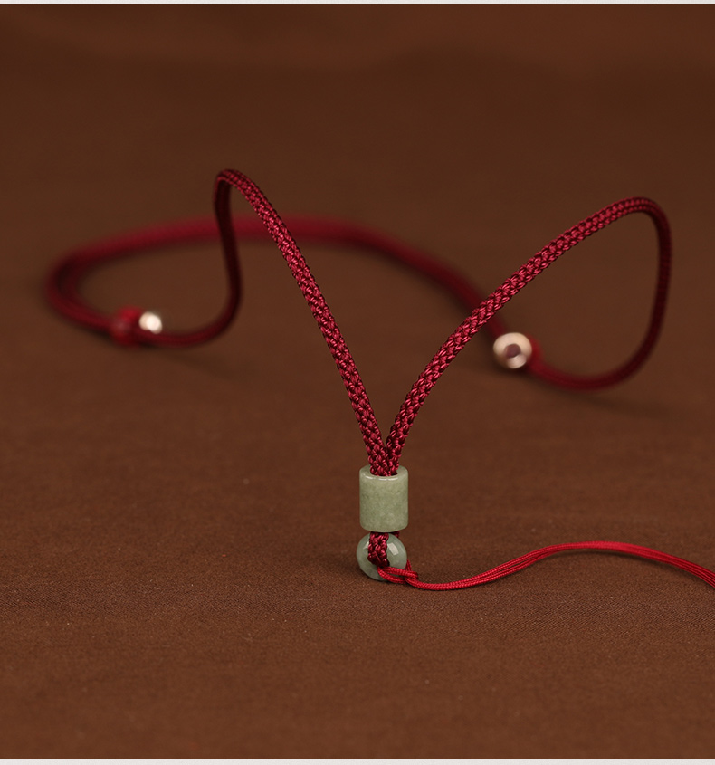 高檔手工編織黑色繩項鏈繩男款轉運珠配黃金玉吊墜鏈子女生本命年