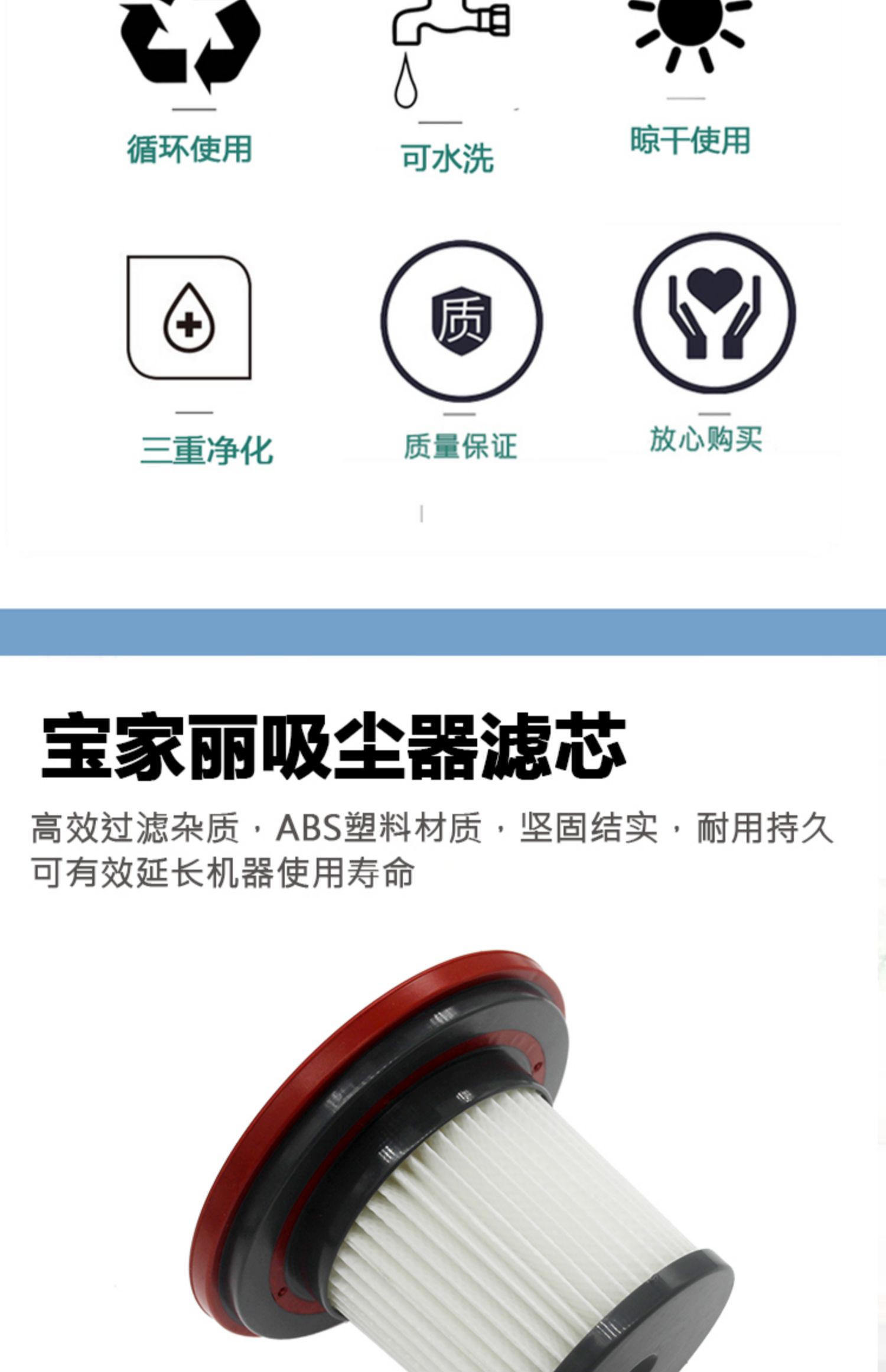 杰諾吸塵器配件海帕水洗濾網過濾芯
