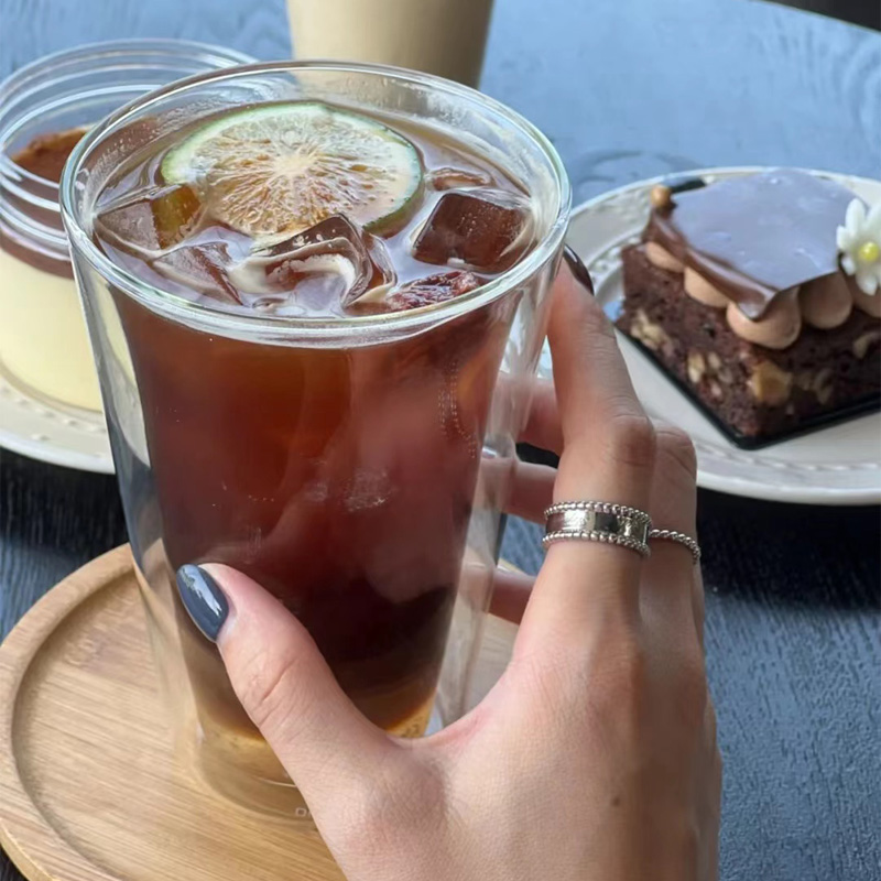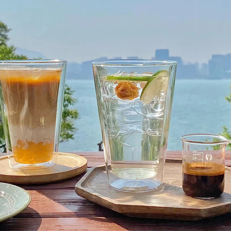 ins韓式簡約透明雙層隔熱玻璃杯蘇打水氣泡杯冷萃咖啡杯子果汁杯