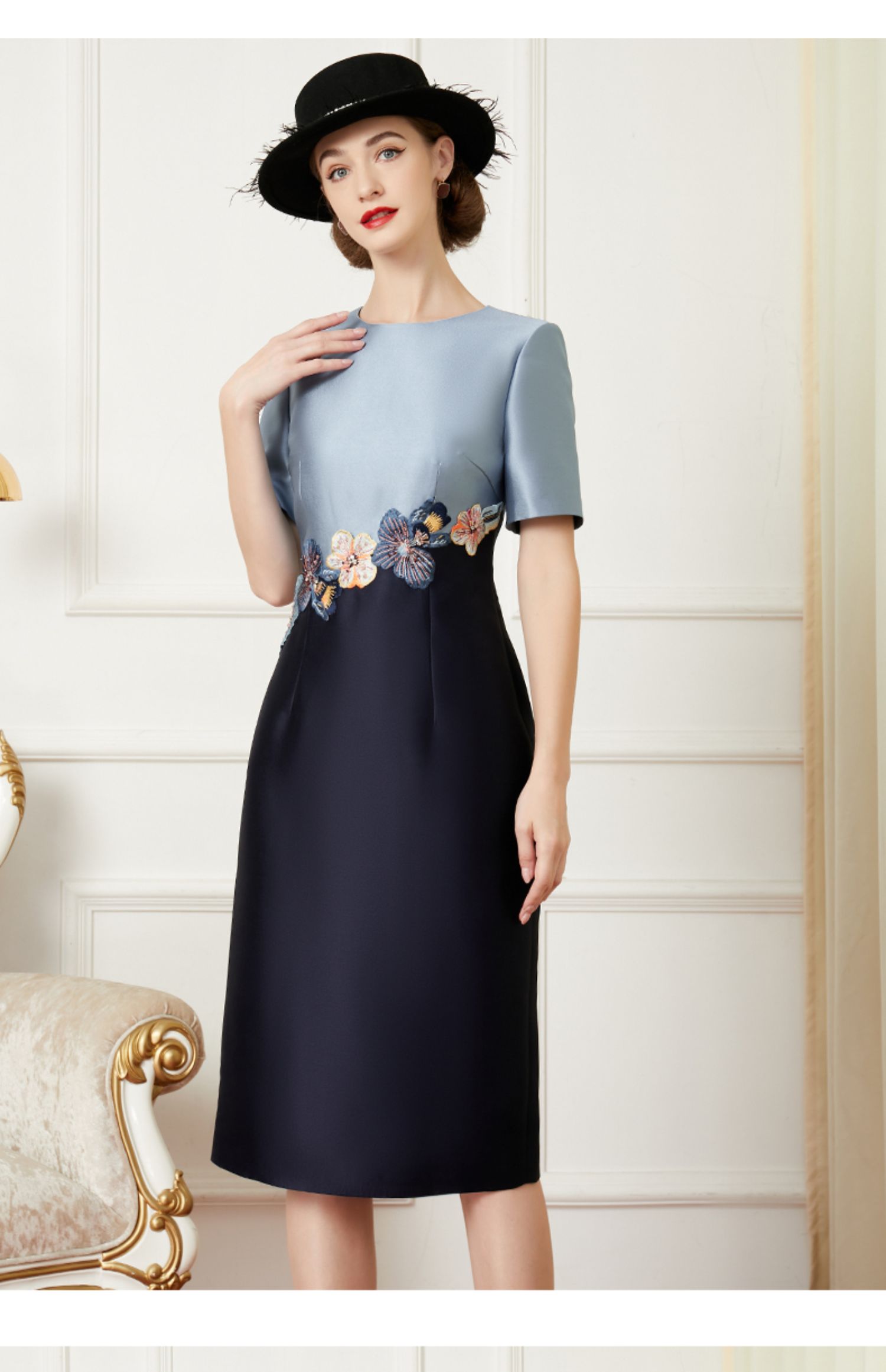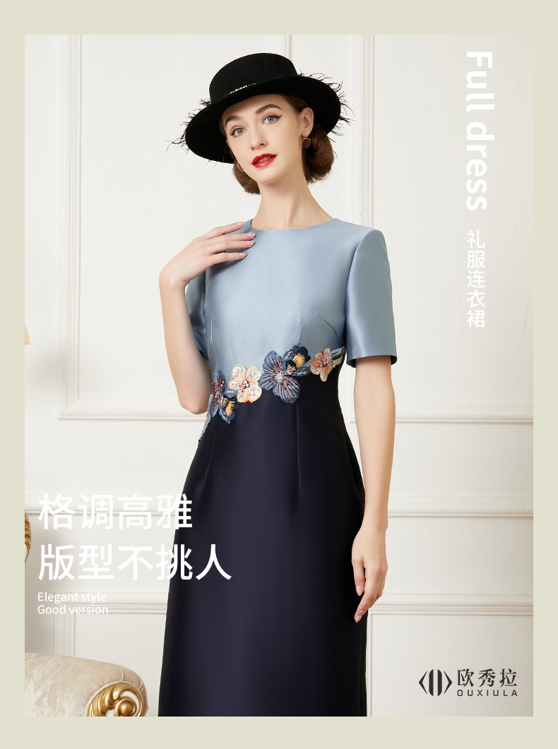 撞色拼接婚禮媽媽裝高貴喜女敬酒服
