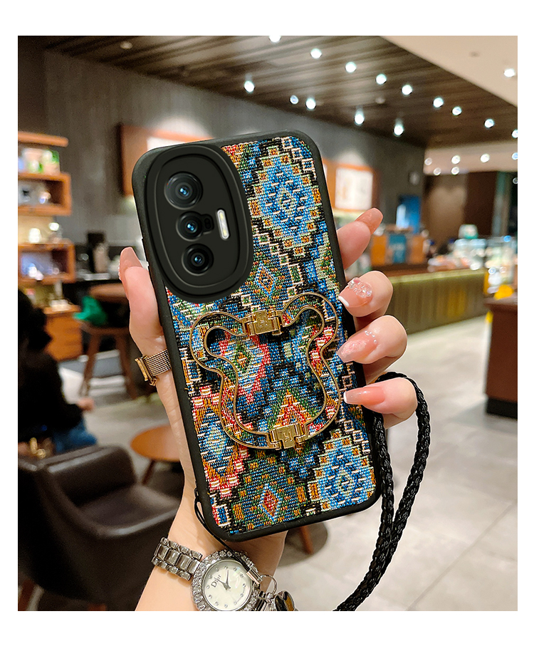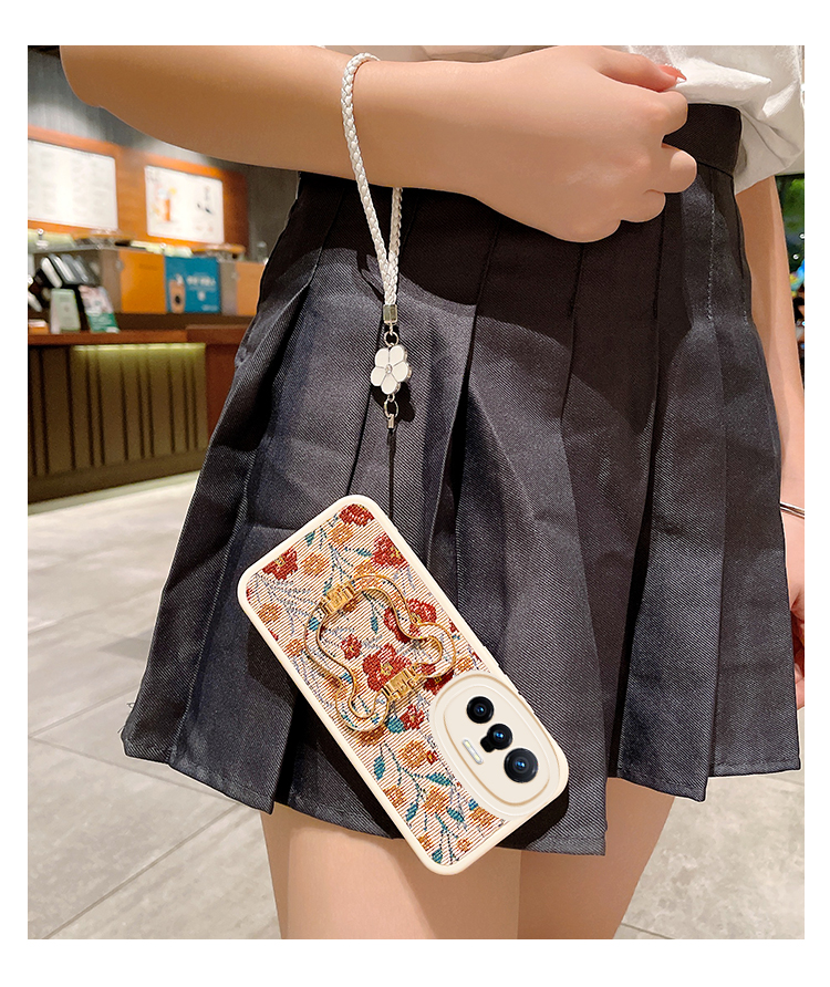 刺繡菱格花朵適用vivox70手機殼vivox80Pro十保護套支架vivix90硅膠X60軟殼X50全包防摔x30復古x27情侶x23