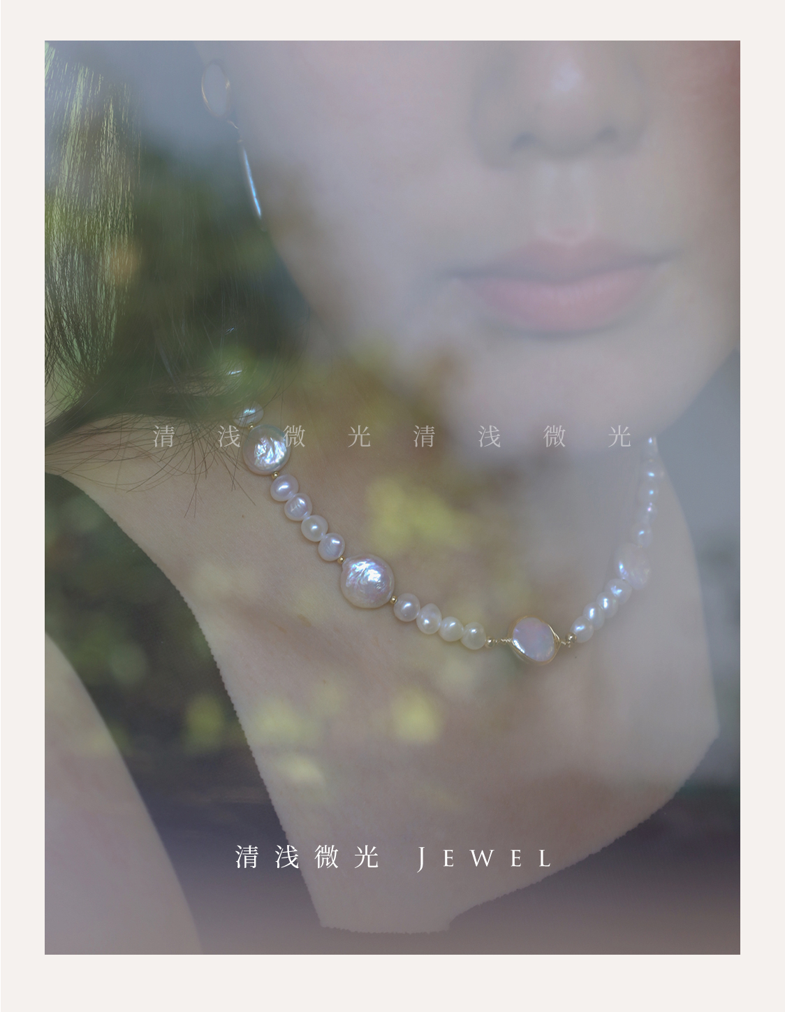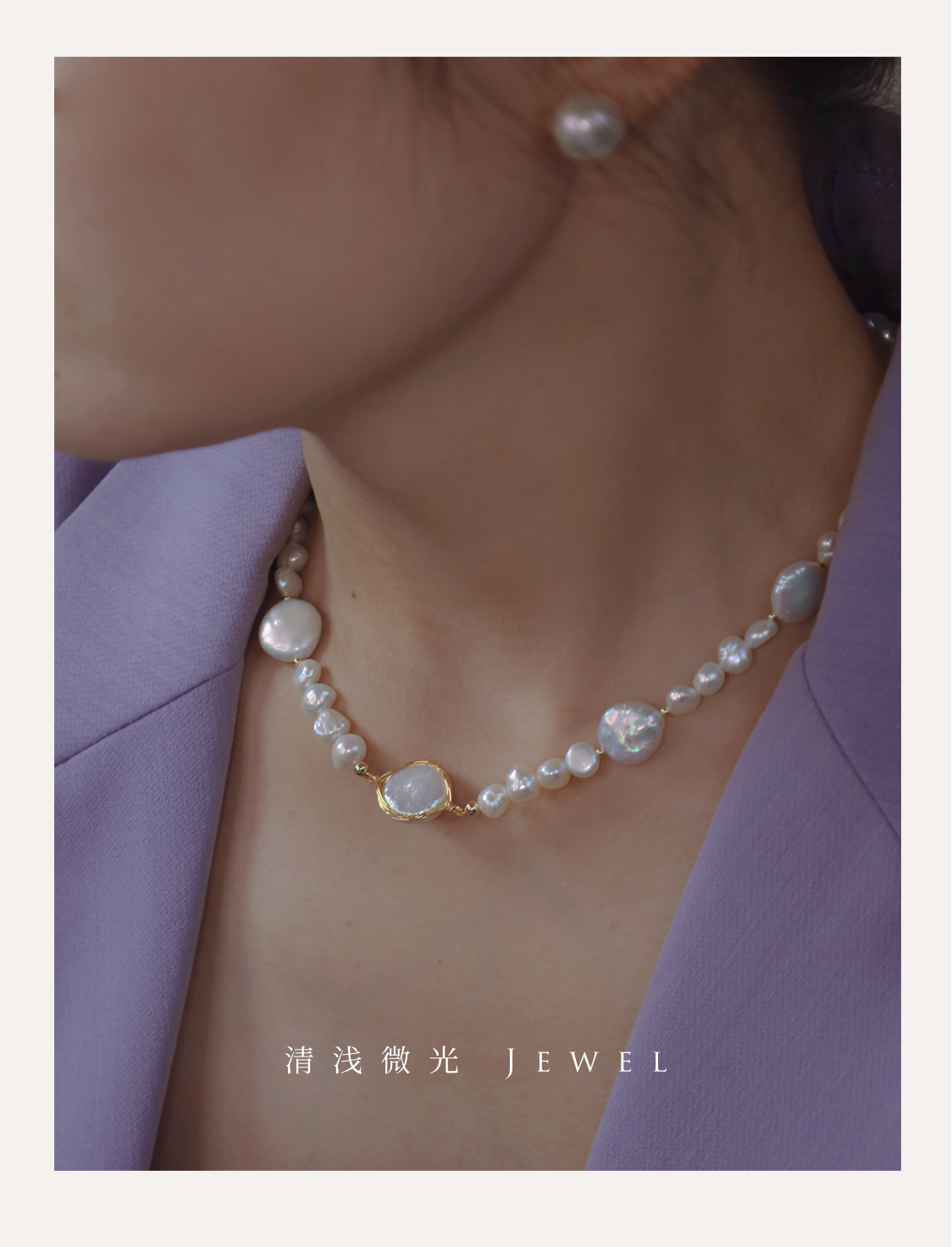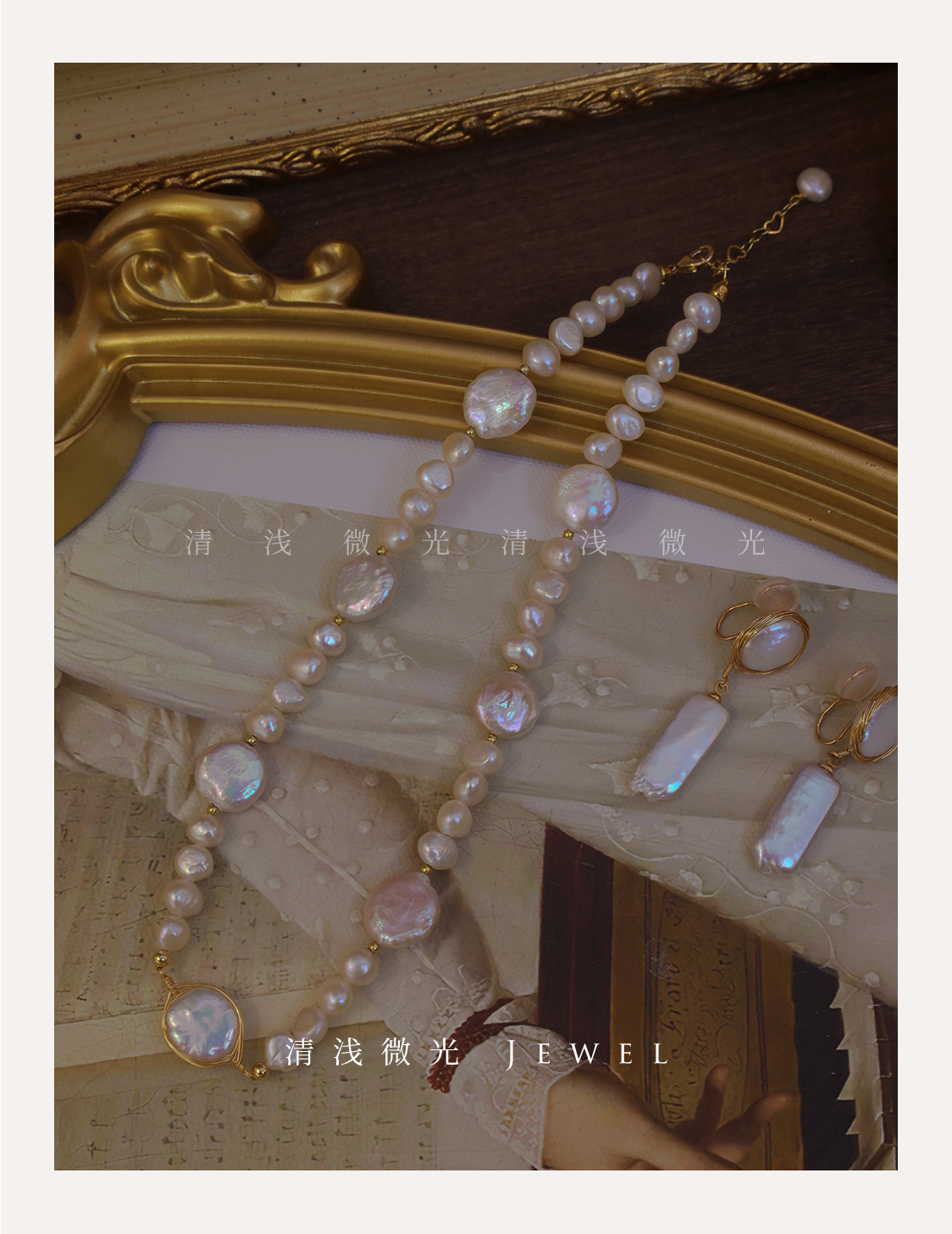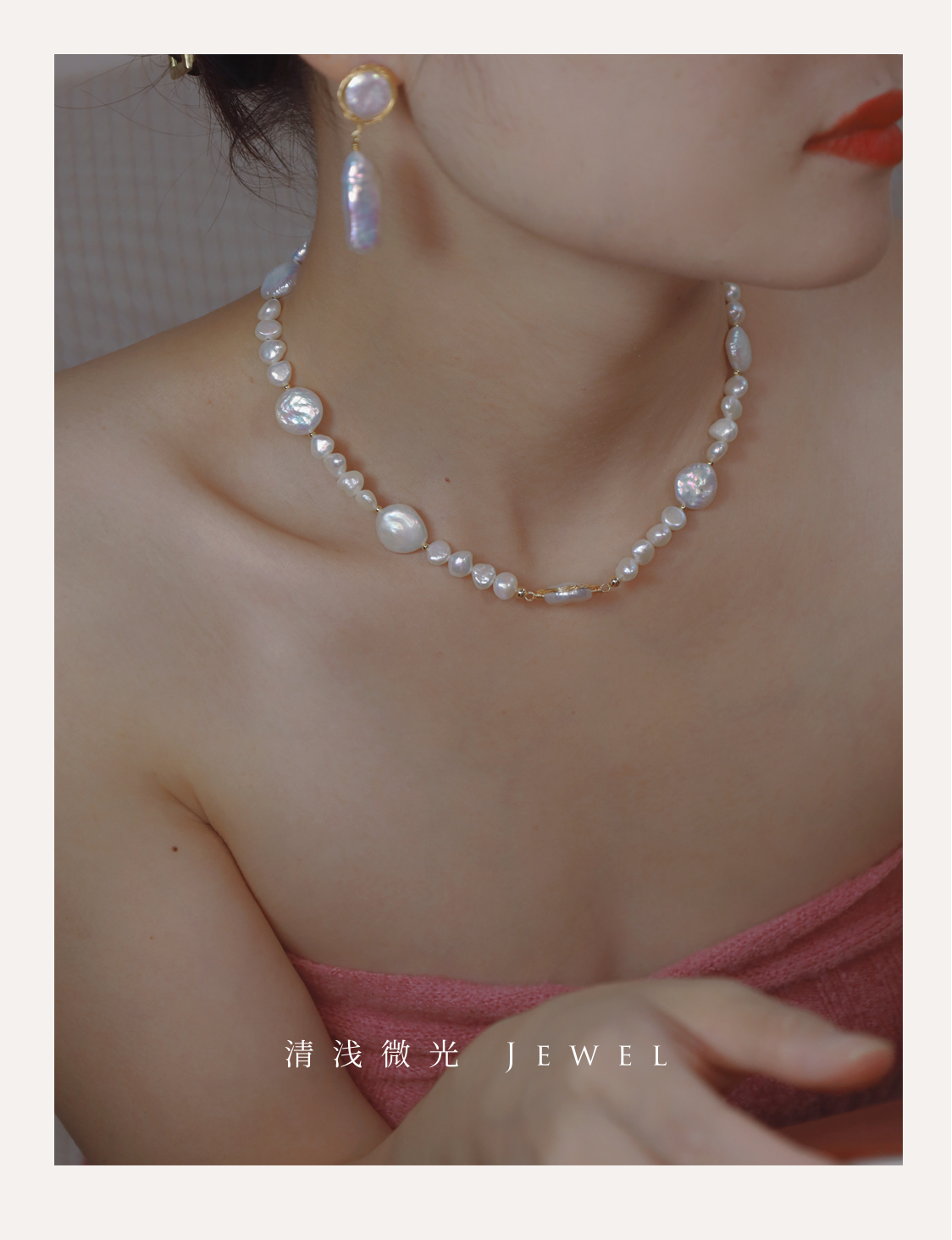 清淺微光 羅納河星夜 法式小眾手工繞線巴洛克珍珠項鏈 氣質個性
