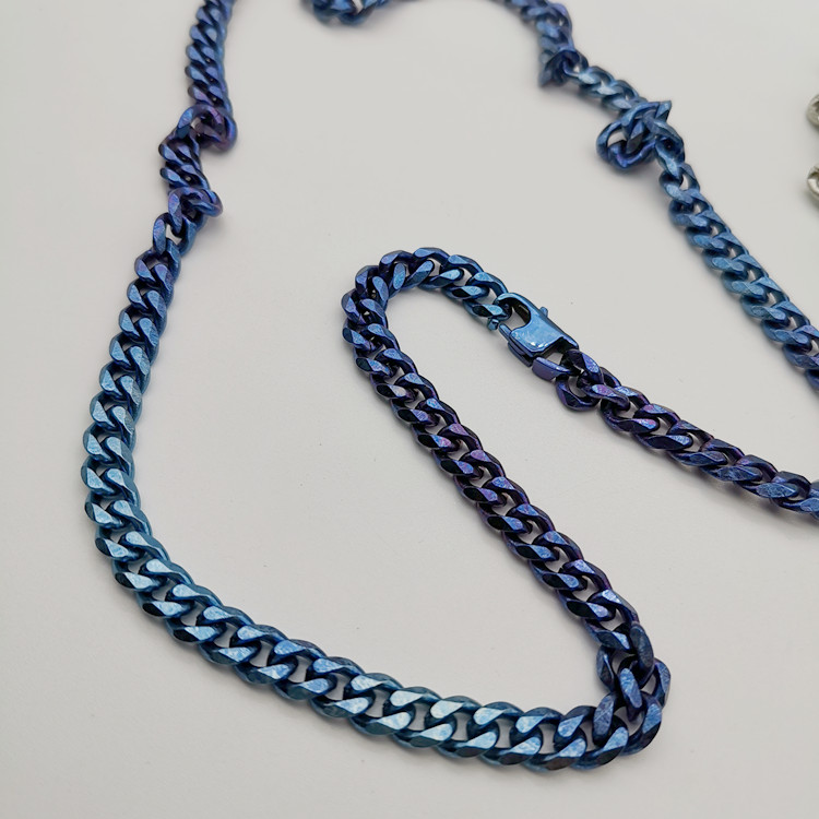 防過敏純鈦男士六角鏈子嘻哈冰花彩鈦扭片鏈條百搭女牛仔鏈飾品潮