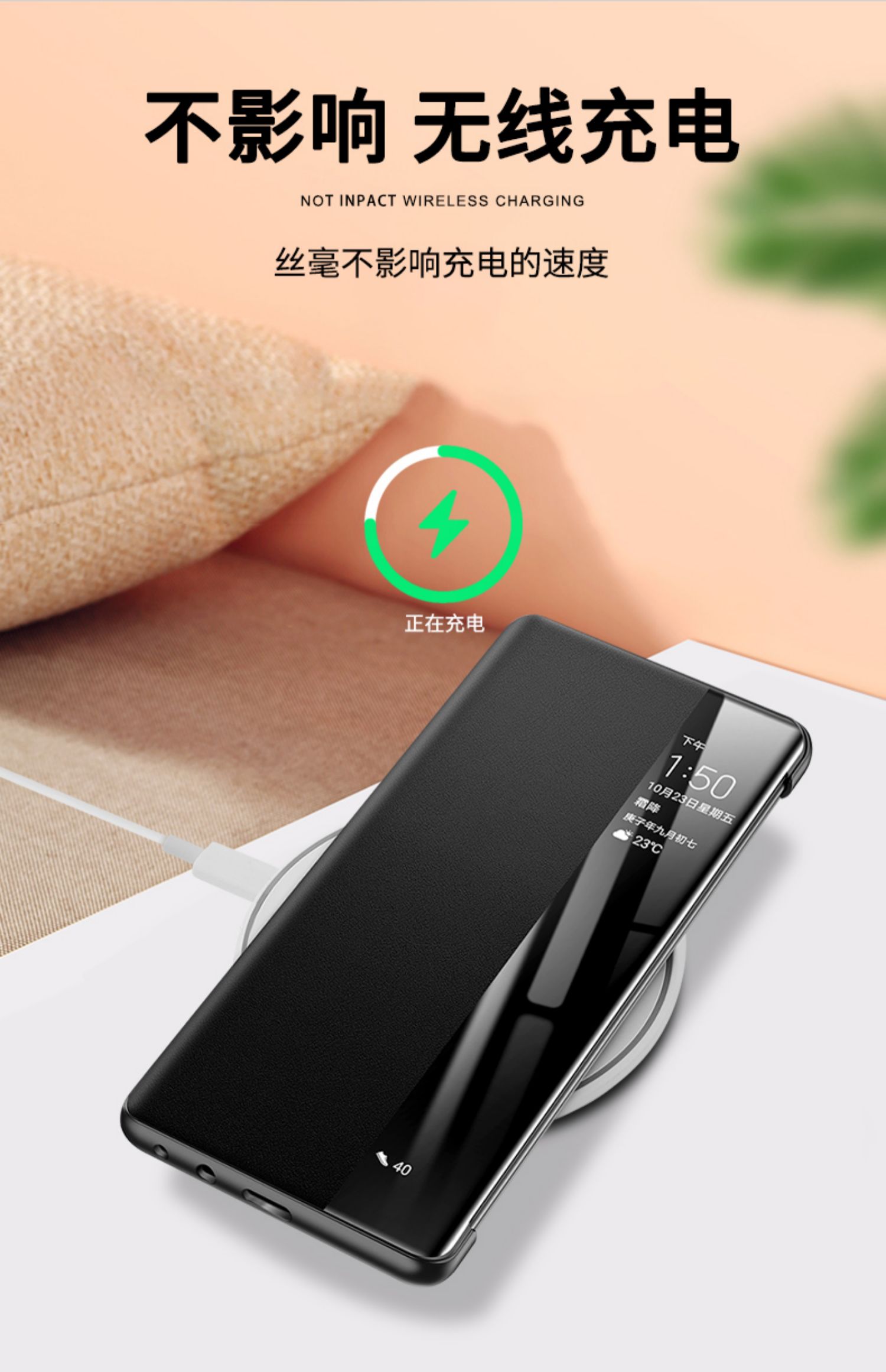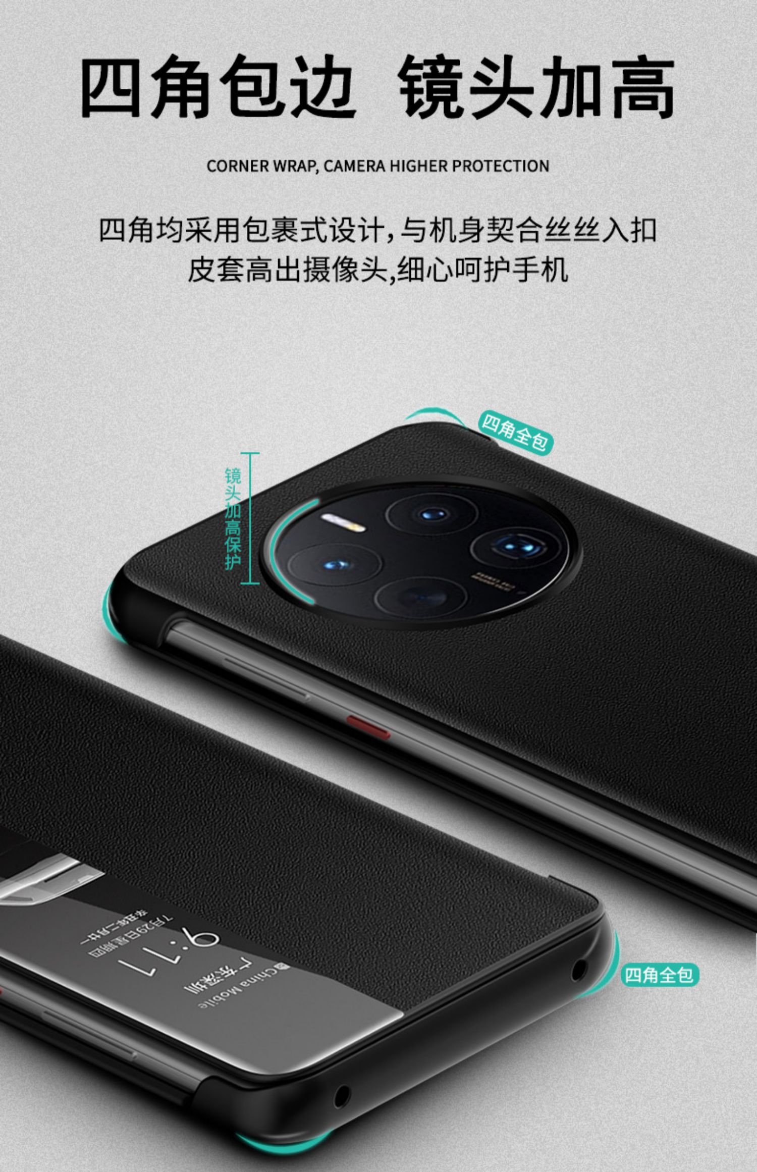 適用于華為p50pro真皮翻蓋鏡頭p50e