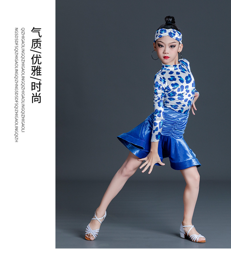 兒童拉丁舞服秋冬拉丁舞裙練功服女少兒比賽服女童絲絨長袖演出服