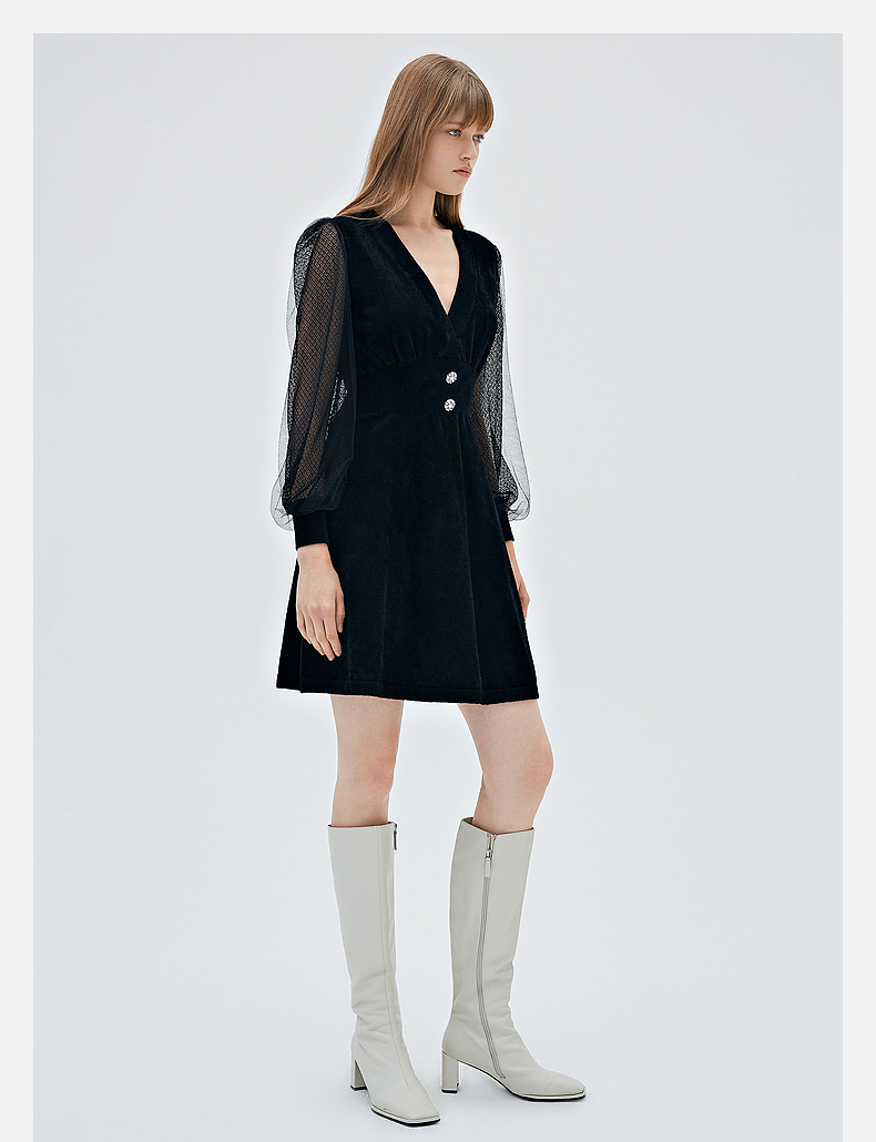 ELLASSAY歌力思2022冬季新款優雅氣質網紗拼接連衣裙EWE334M05200