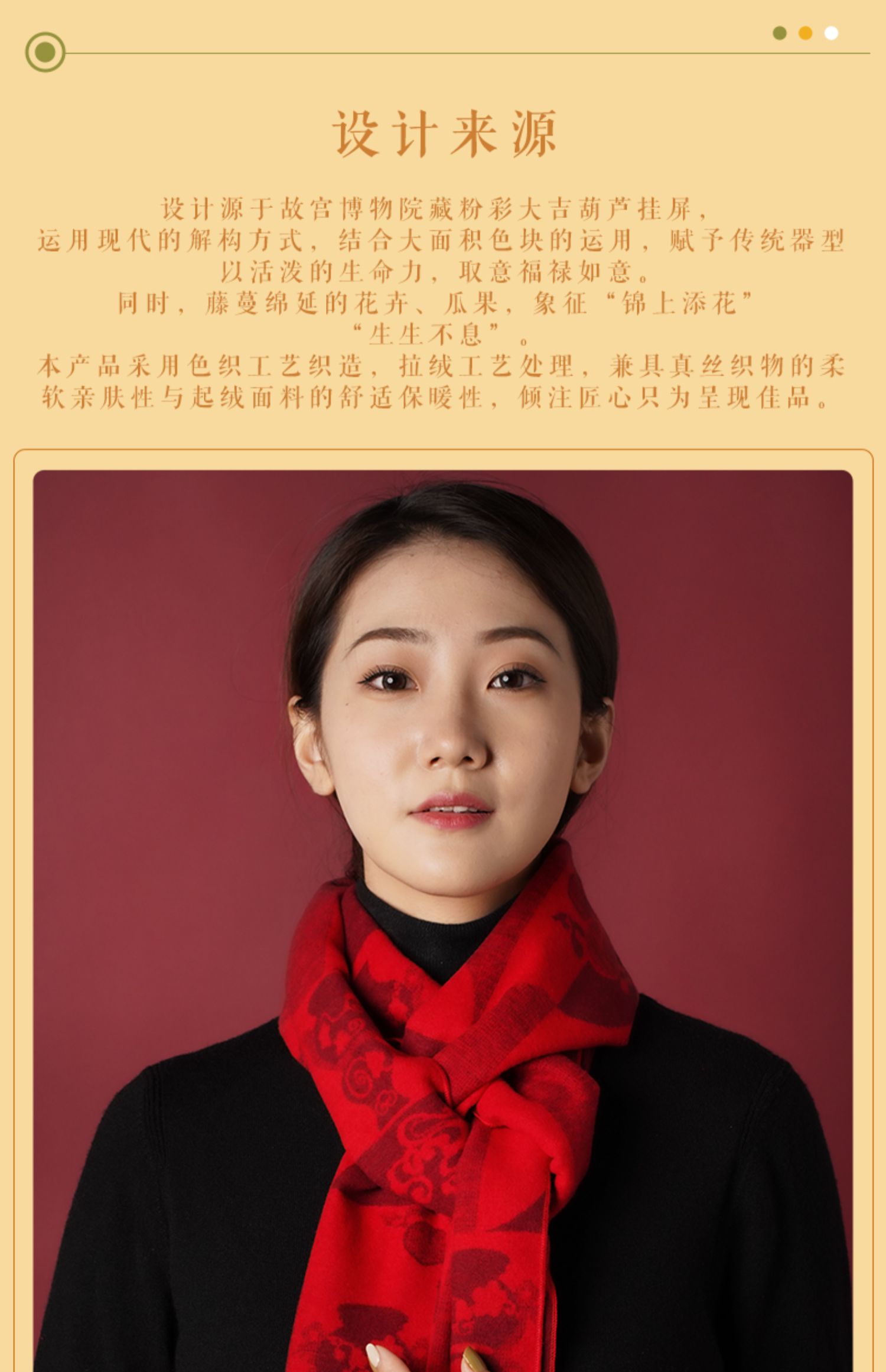 故宮 福祿多多真絲拉絨長巾 圍巾絲巾禮盒生日禮物故宮官方旗艦店