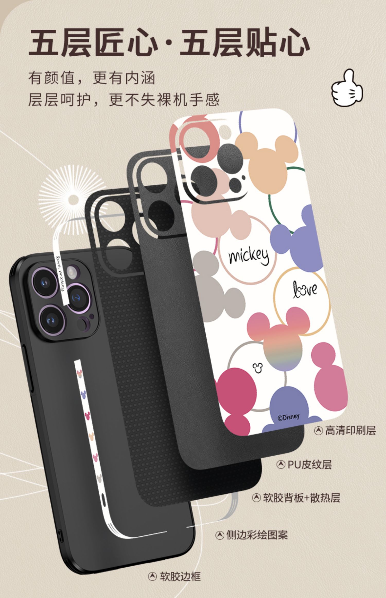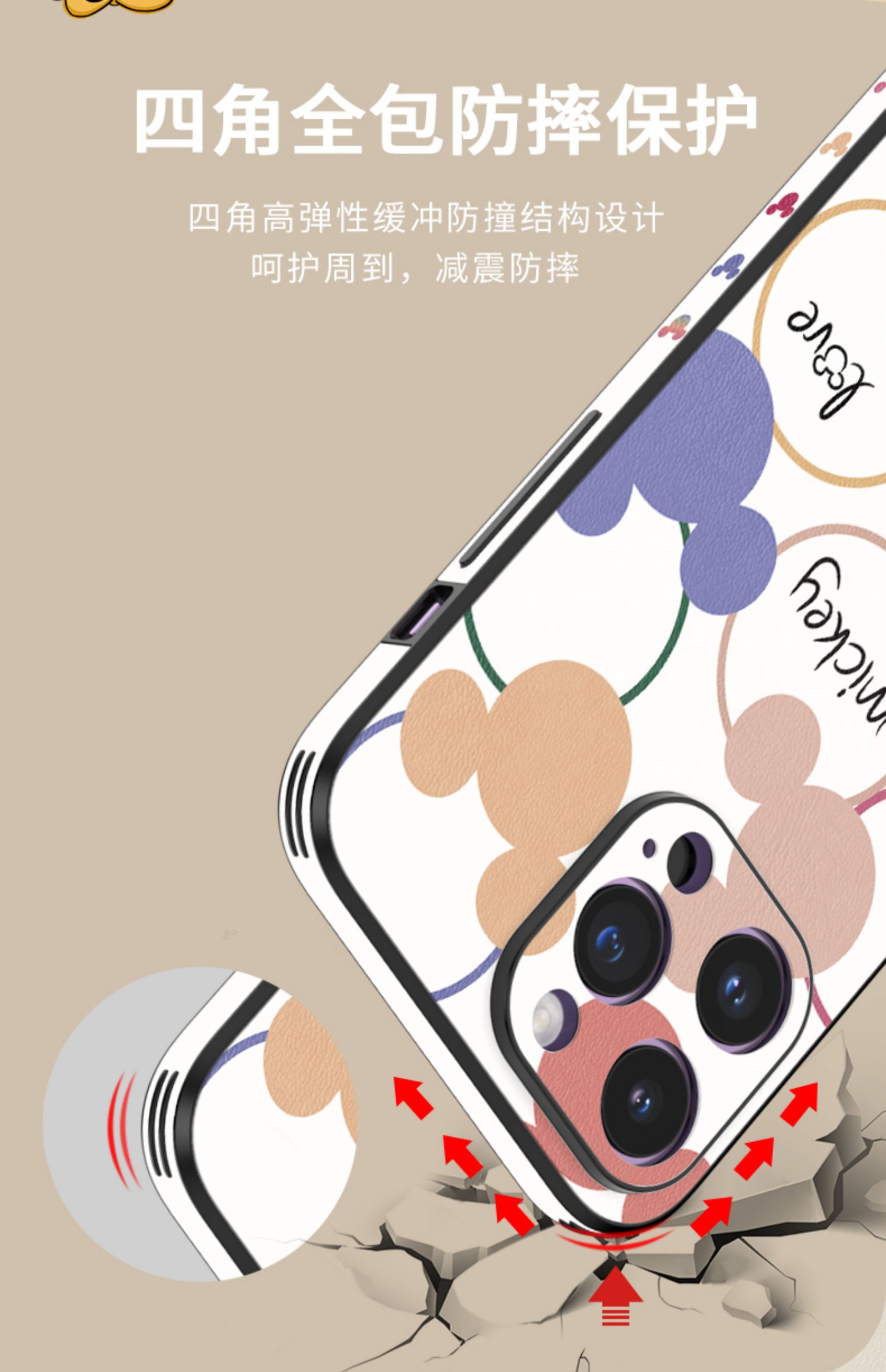 迪士尼正版適用蘋果15手機殼新款全包iPhone15promax高級感14plus防摔粉色米奇13高端pro素皮por女款puls情侶