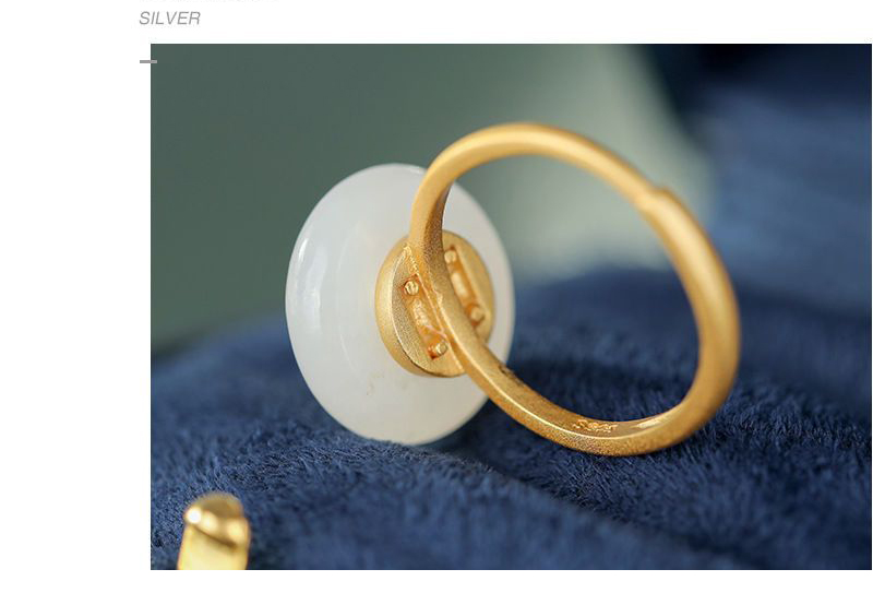平安扣戒指S925銀鎏金紐扣和田白玉開口指環復古風個性簡約配飾