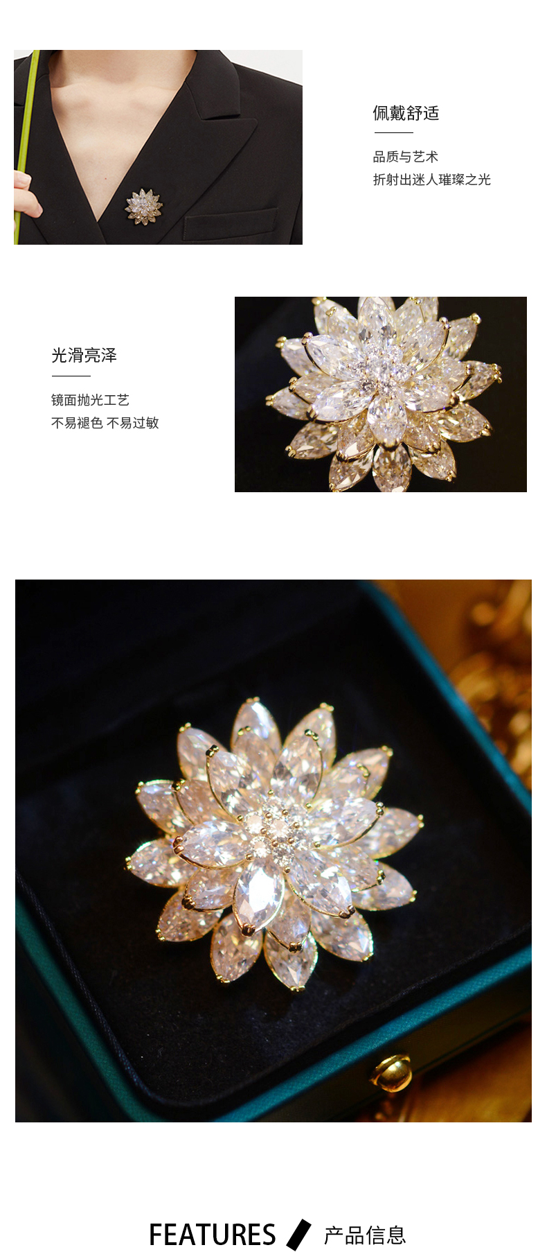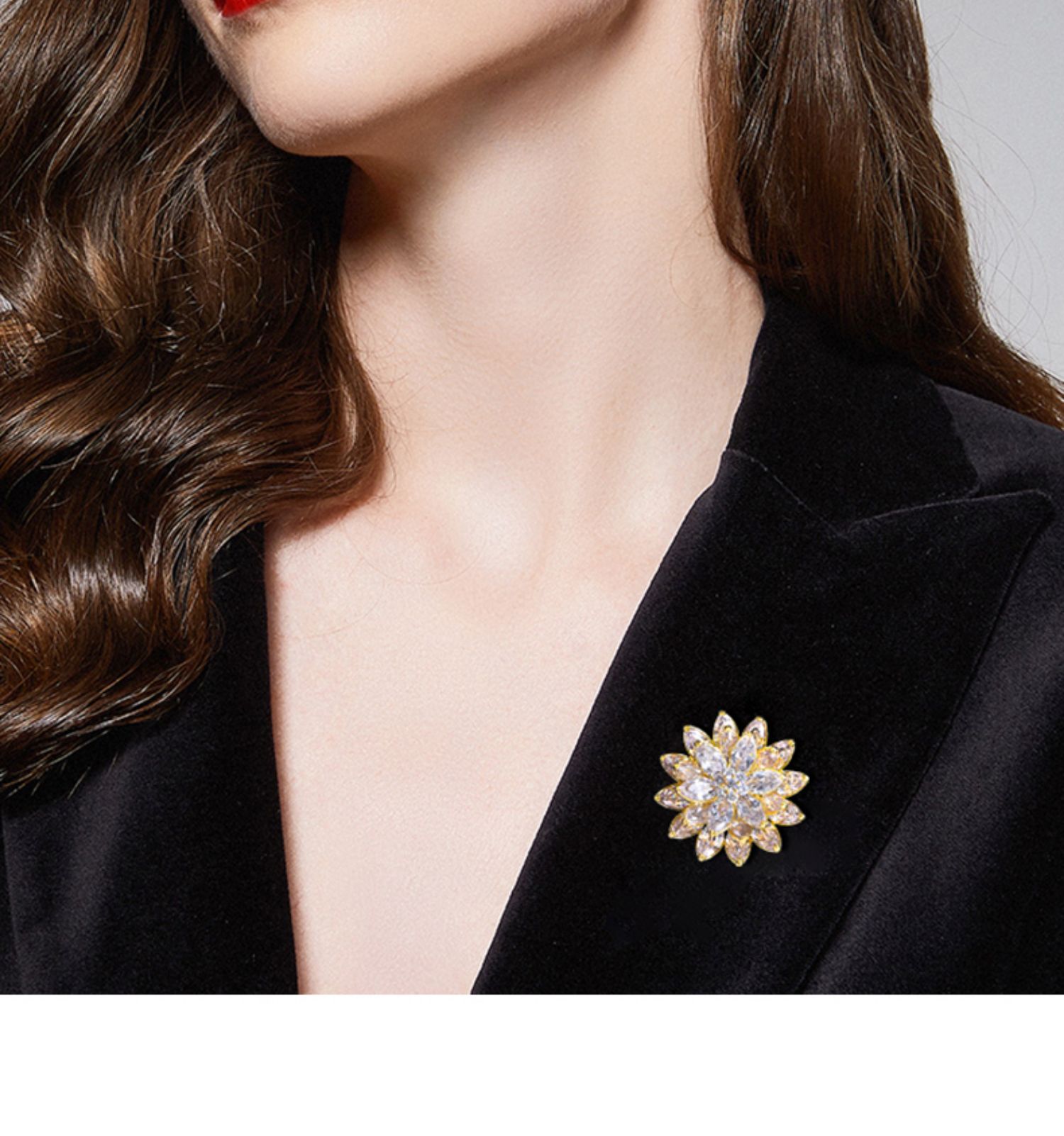 韓版奢華雪蓮花鋯石胸針時尚高檔胸花氣質大衣西裝百搭小巧防走光