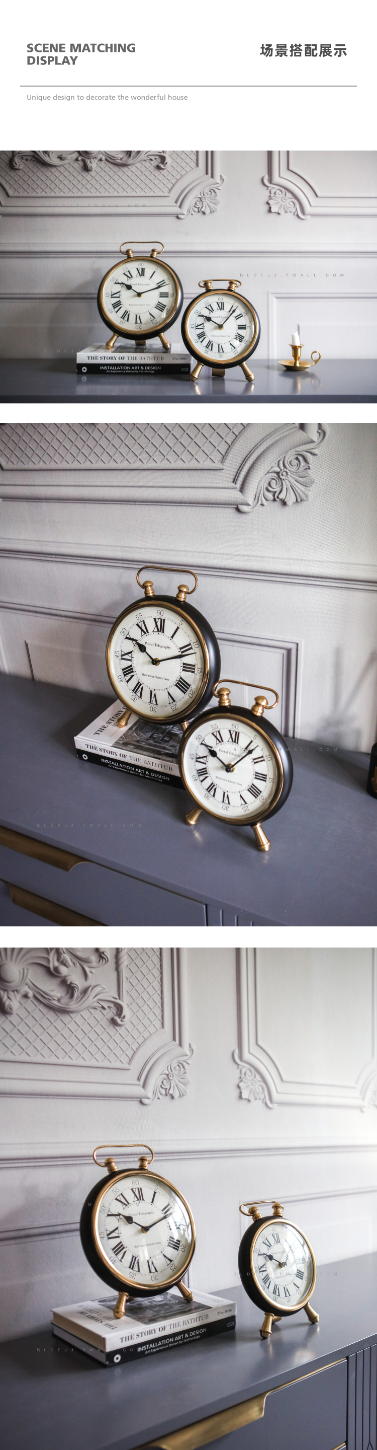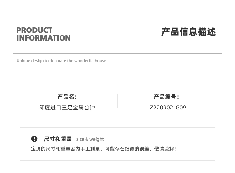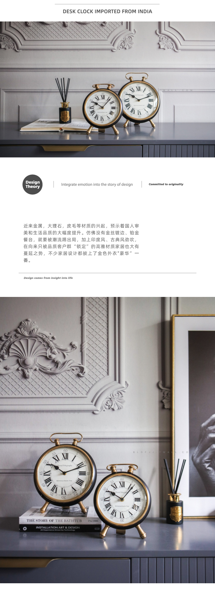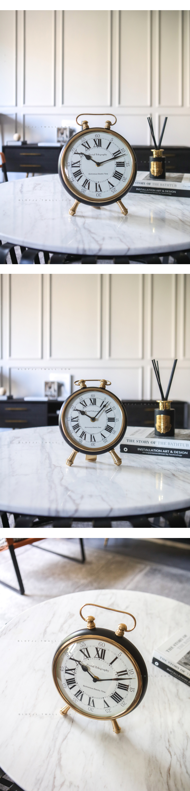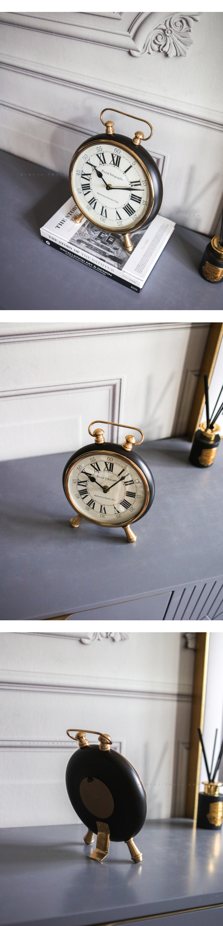 印度進口三足金屬臺鐘可掛置軟裝售樓處別墅臥室客廳玄關擺件時鐘