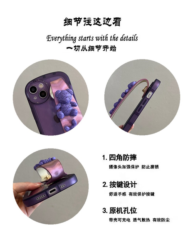 葡萄紫卡通熊兔腕帶適用iPhone14手機殼14promax背帶蘋果13可愛14pro新款13promax斜挎13pro軟膠12女款12pro