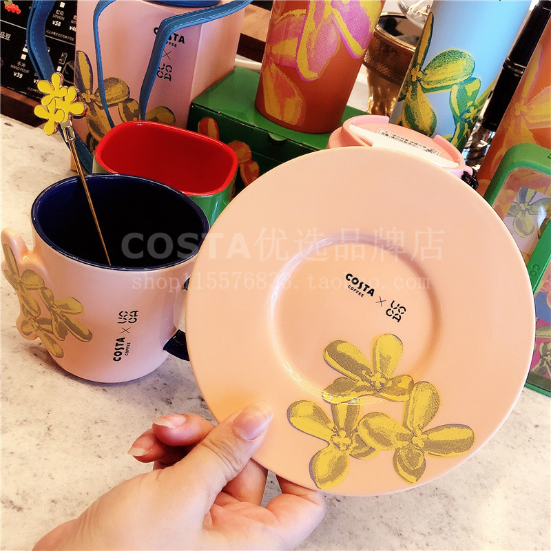 李斯丹妮同款costa馬克杯當代新桂陶瓷杯網紅ins保溫吸管杯單肩包