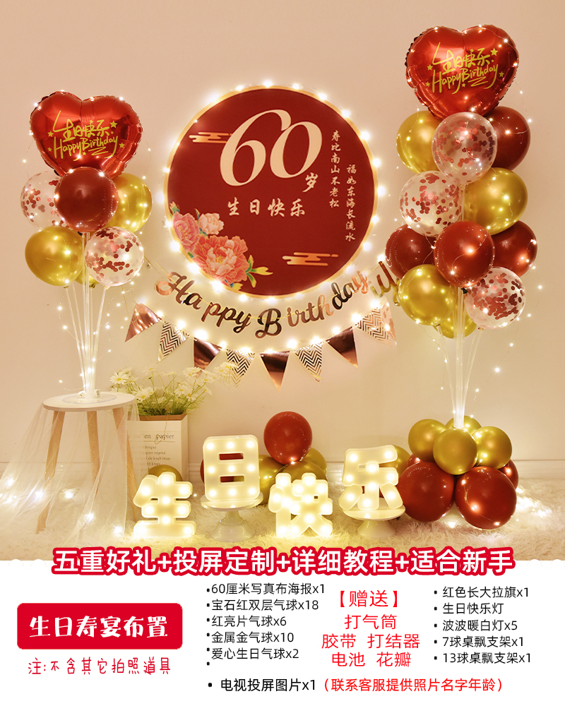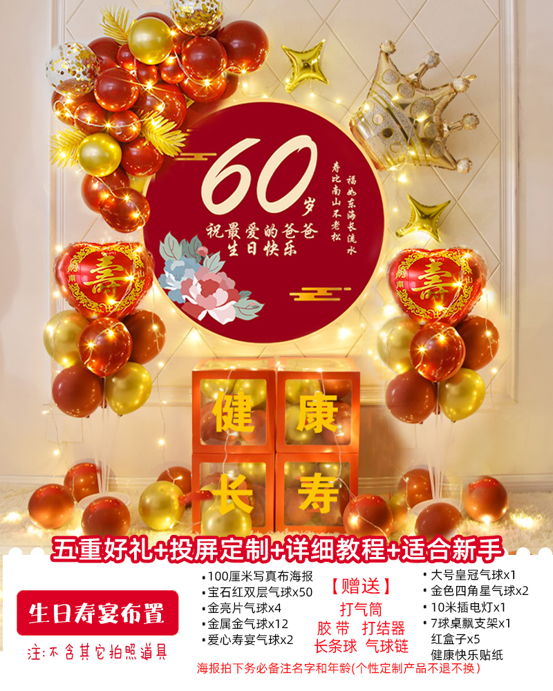 老人六十大壽過壽場景裝飾70爸爸80媽媽60生日氣球壽宴布置背景墻