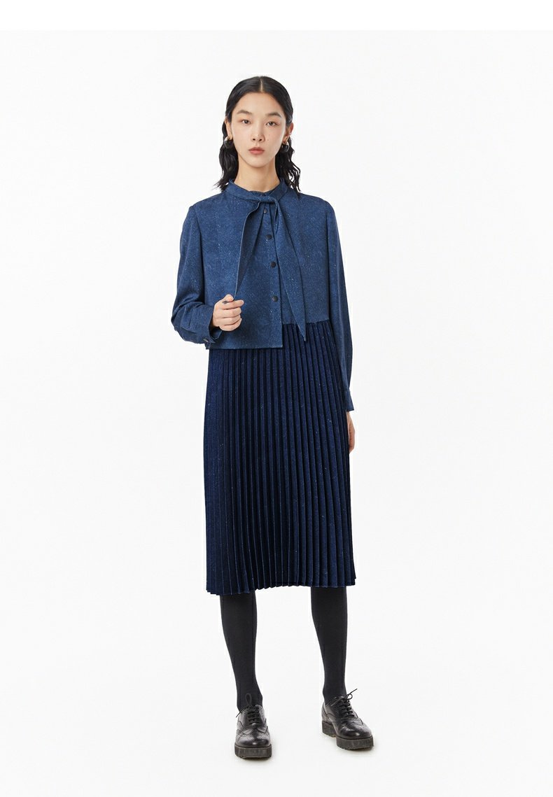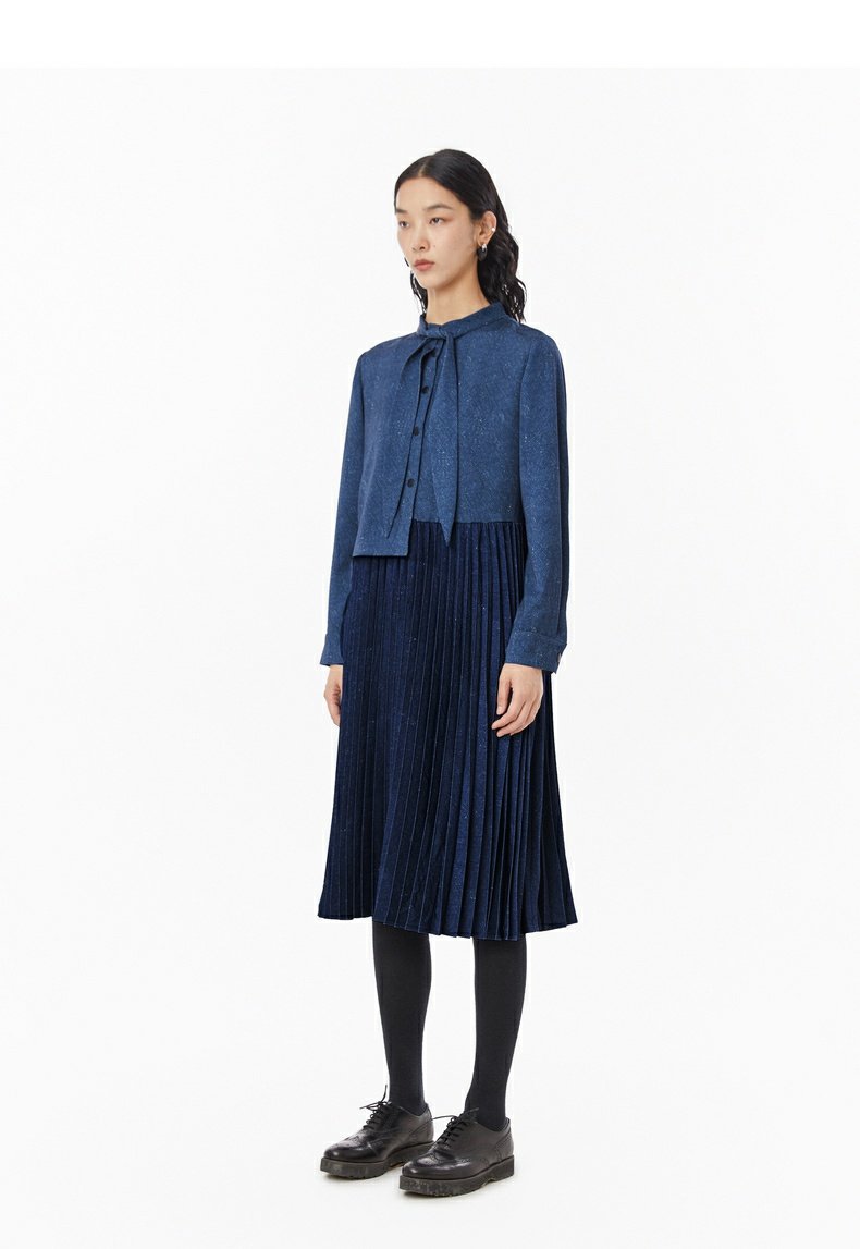 【商場同款】MOVEUP幻走2022冬季新款系帶印花小眾設計壓褶連衣裙