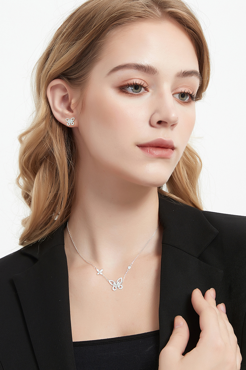 高碳鉆蝴蝶女925純銀輕奢鎖骨鏈