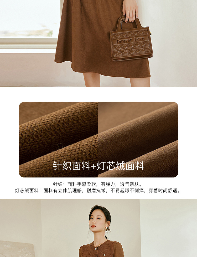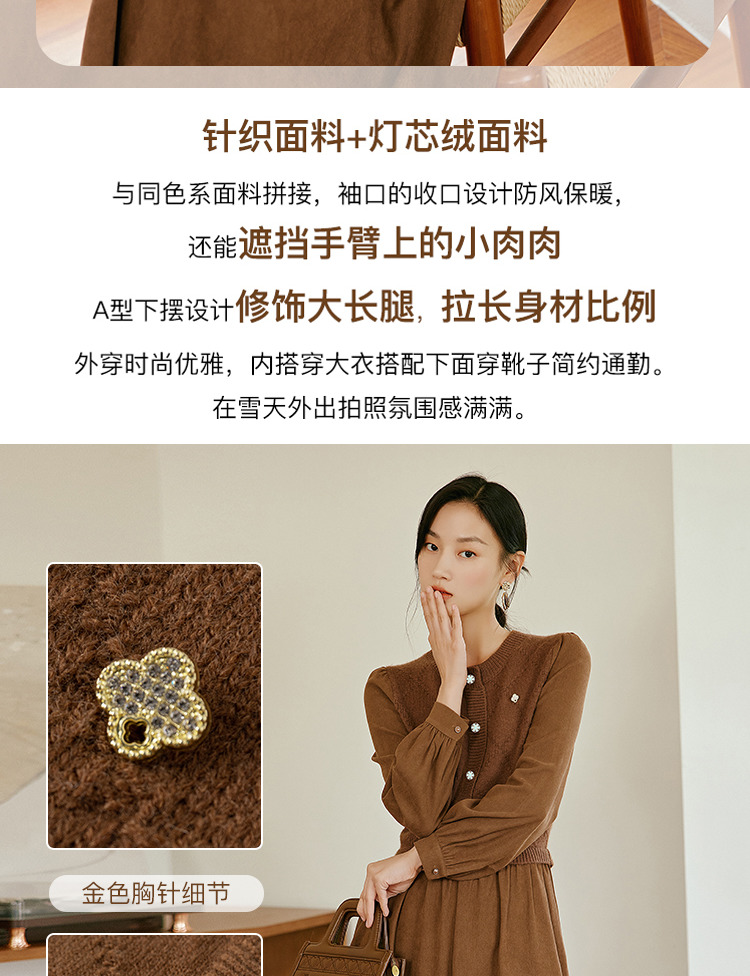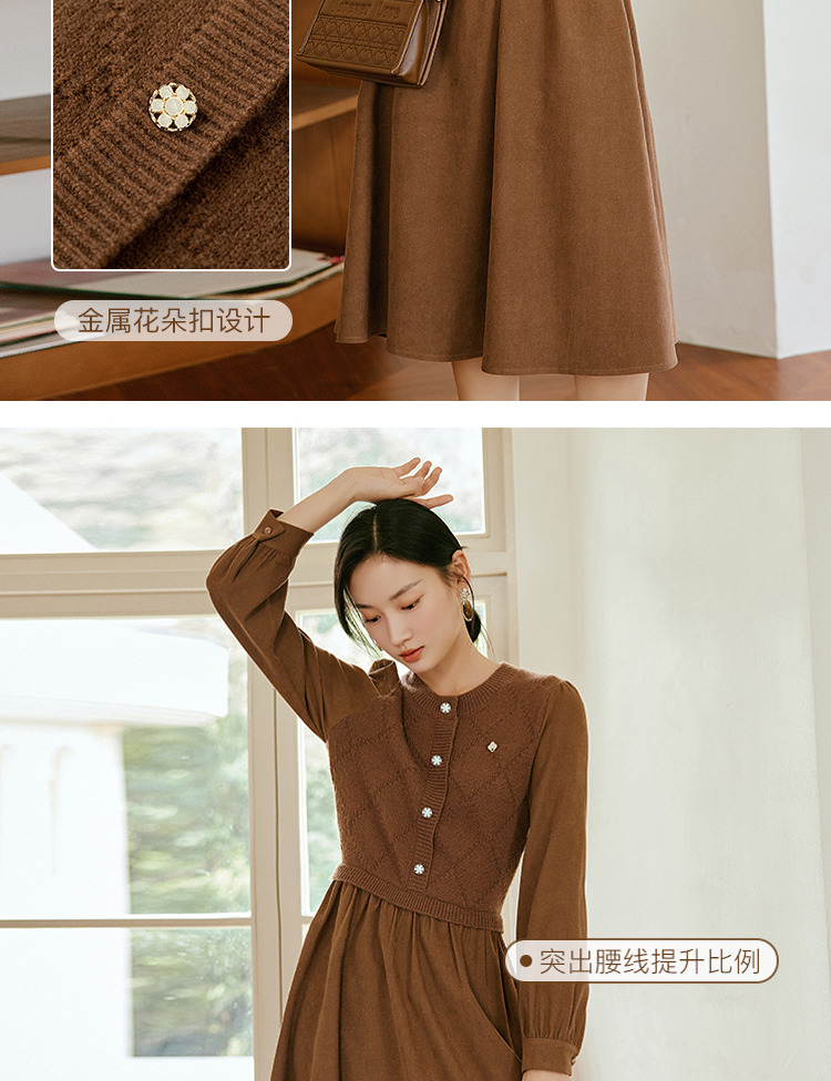 假兩件拼接連衣裙女衣香麗影2023年冬裝新款燈芯絨法式氣質長裙