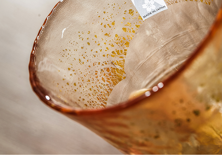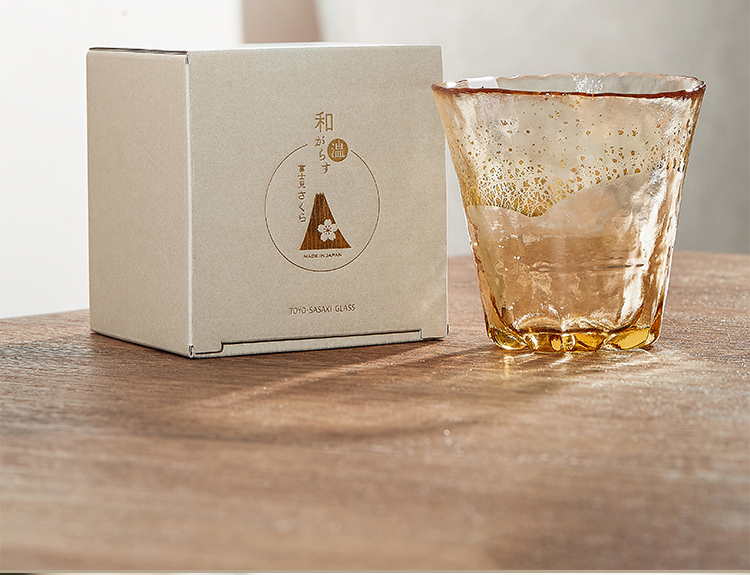 日本進口東洋佐佐木富士山櫻花清酒杯手工金箔杯玻璃冷酒杯小茶杯