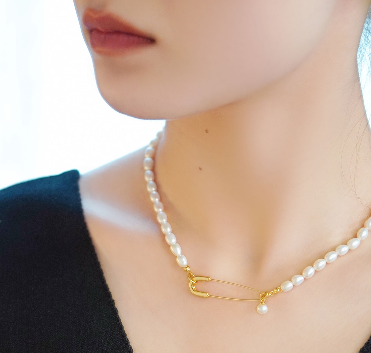 Jic Vialattea小眾原創設計氛圍感寫真秋冬回形針天然珍珠項鏈女
