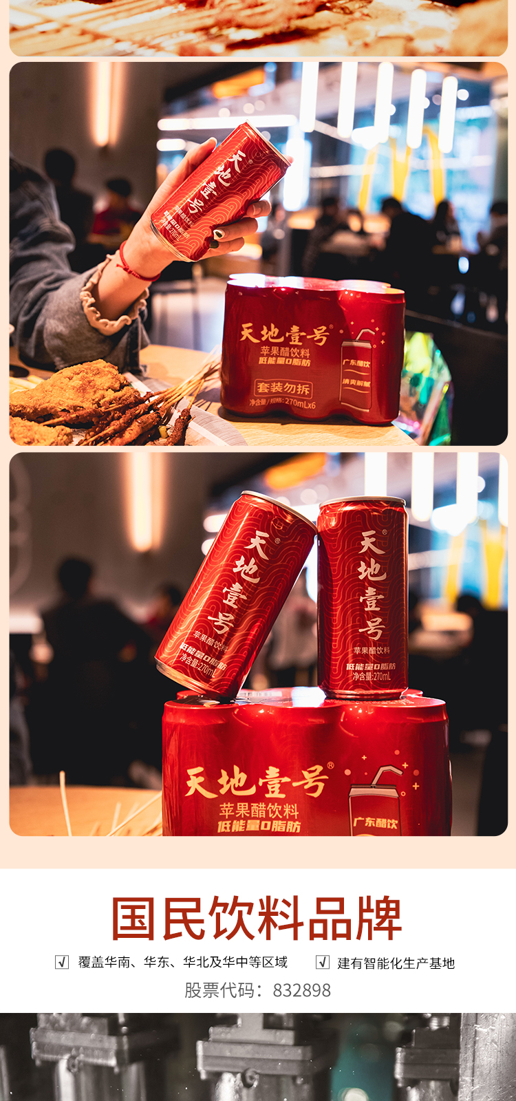 天地壹號蘋果醋飲料270ml *6罐 0脂肪低熱量 酸甜可口 健康佐餐