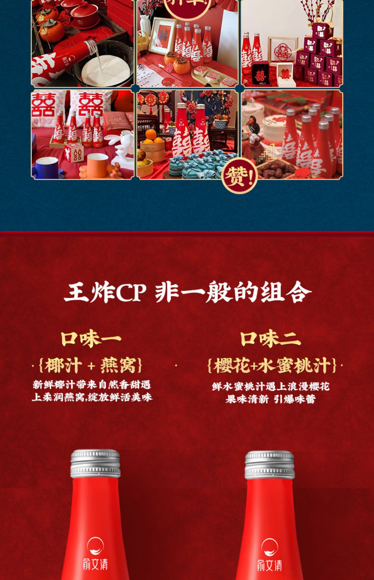 俞文清喜宴婚禮備訂婚結婚椰汁燕窩水伴手禮飲料擺件280ml*8瓶/箱