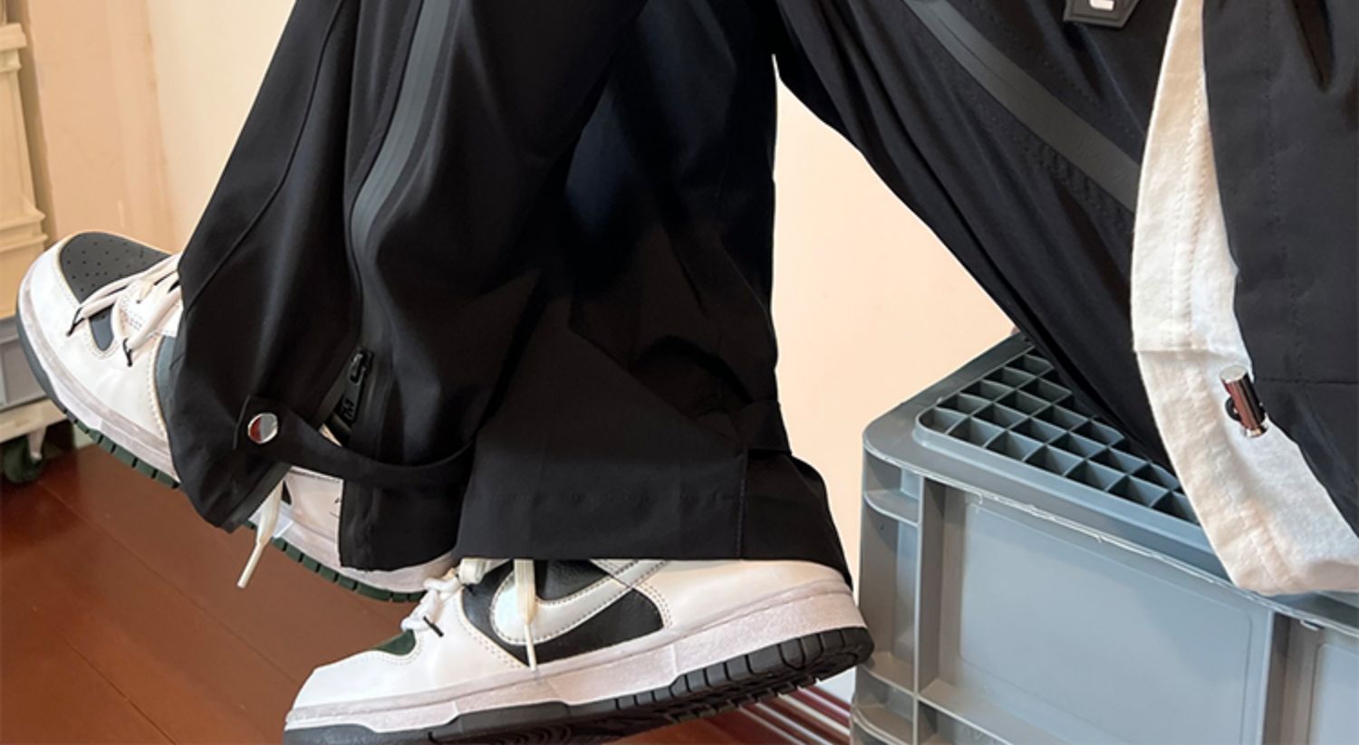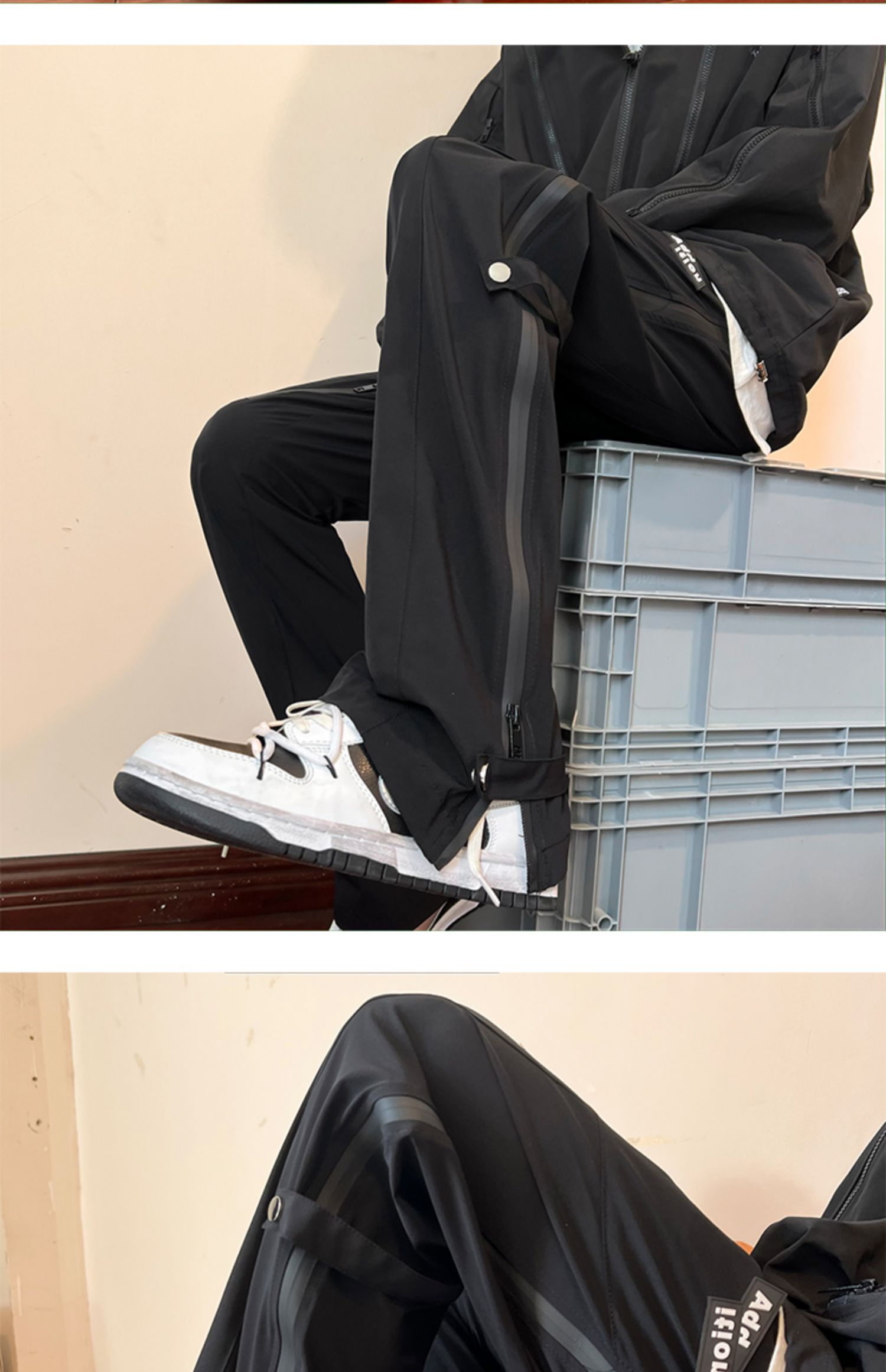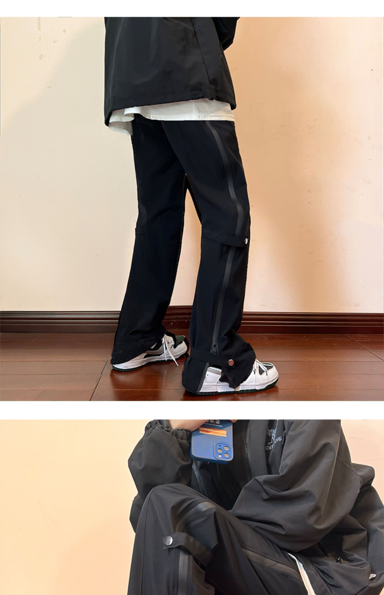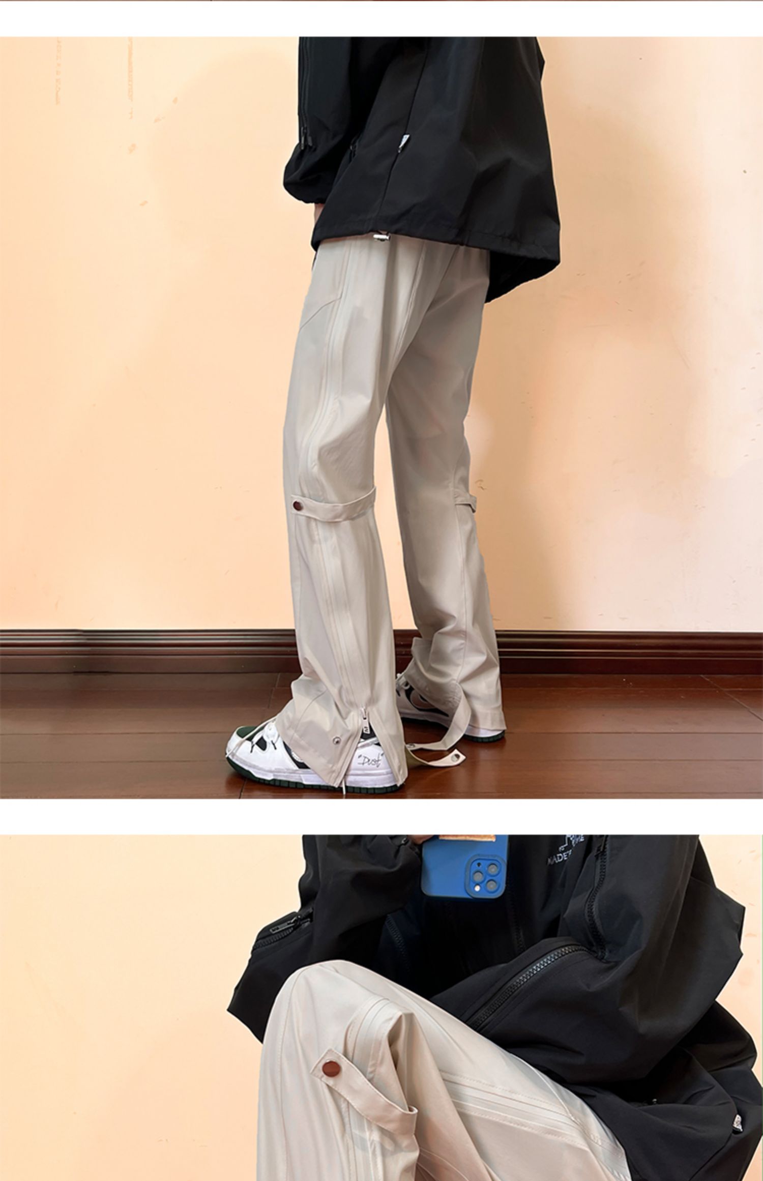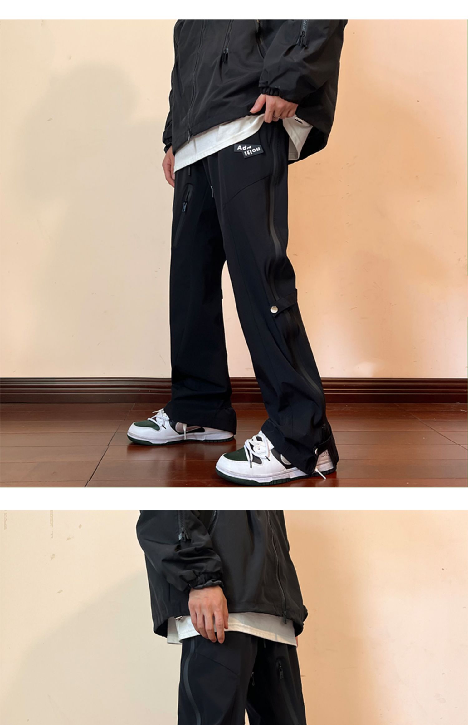 美式高街機能工裝褲男秋季寬松直筒休閑長褲設計感拉鏈防水沖鋒褲