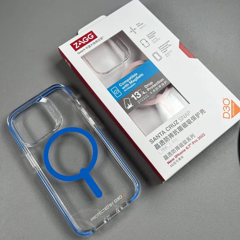 zagg14手機殼晶透磁吸防摔藍色mophie適用于蘋果iPhone14pro手機