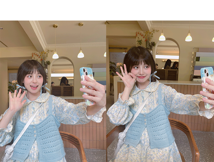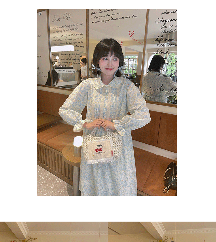 踏進銀河日系甜美花邊娃娃領連衣裙