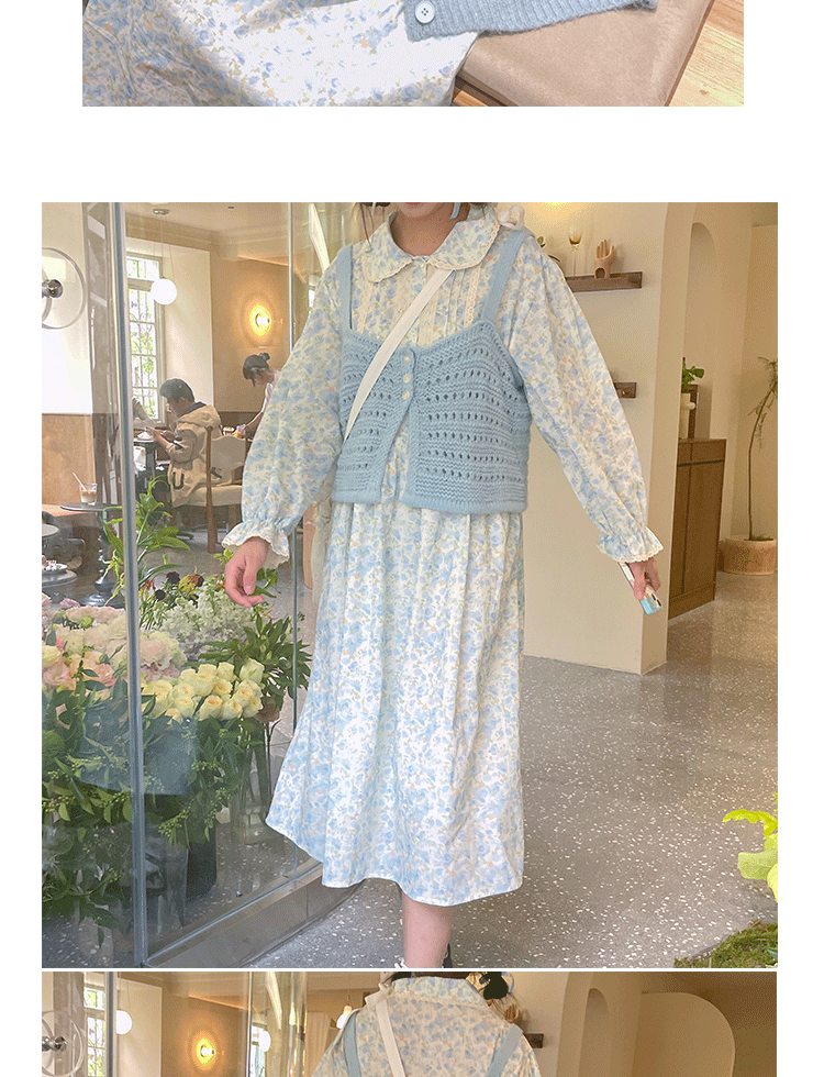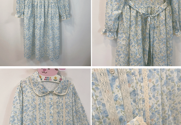PinkstarShop春裝女新款小蘭花碎花蕾絲拼接娃娃領內搭打底連衣裙
