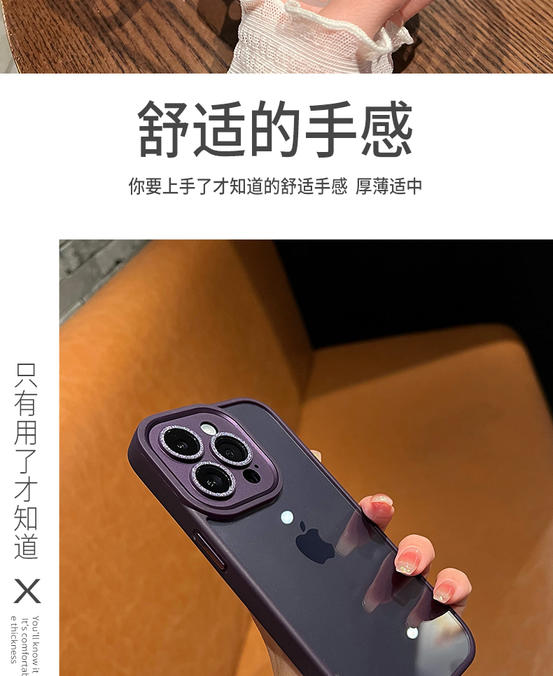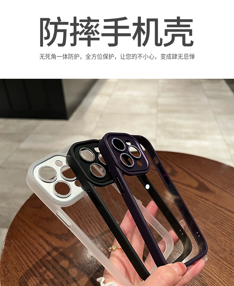 暗紫色閃粉金屬鏡頭適用于蘋果15pro透明iphone14plus手機殼高級13promax全包防摔12pro新款保護套11簡約男女