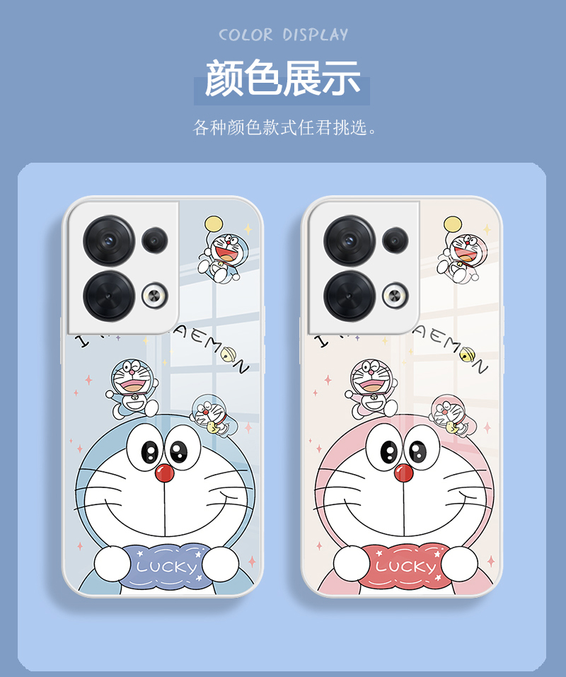 opporeno9手機殼新款reno8pro+全包防摔Reno10高級感reno7se/6/5液態玻璃0pp0reno4幸運卡通哆啦男女款保護套