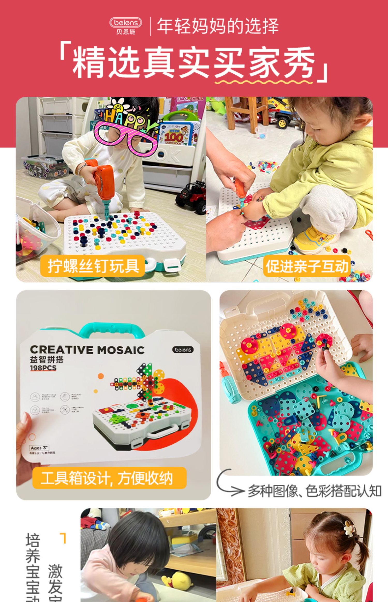 貝恩施兒童擰螺絲釘組裝拆卸工具箱