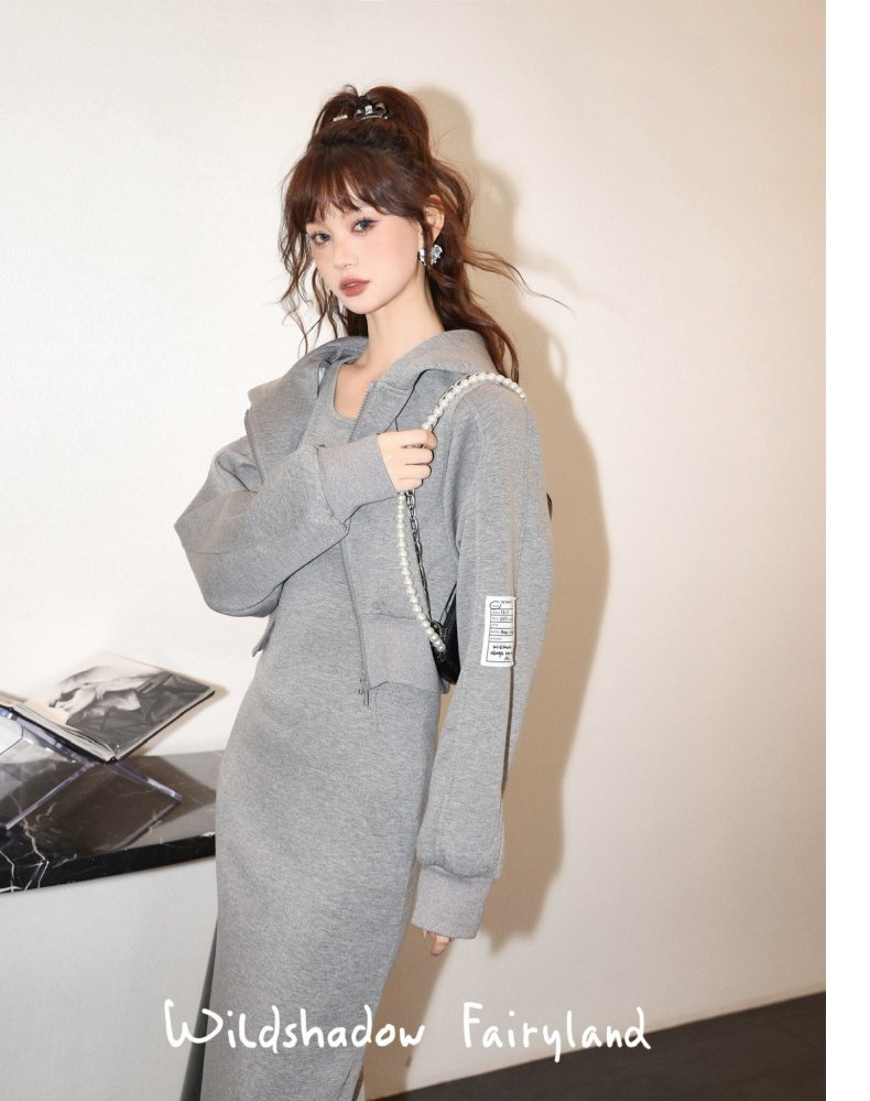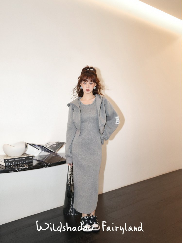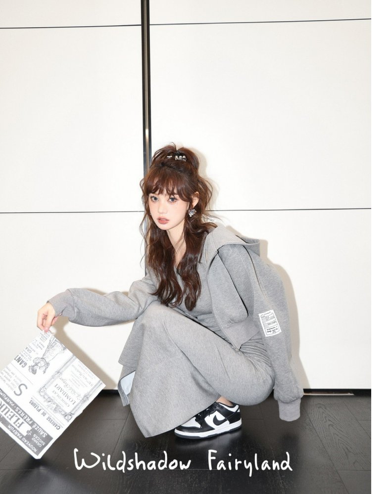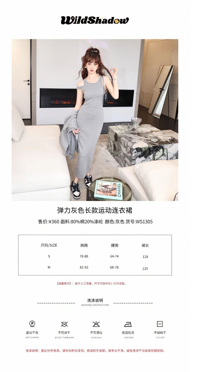 WILDSHADOW官方旗艦店超A短運動帽衫外套彈力灰色長運動連衣裙