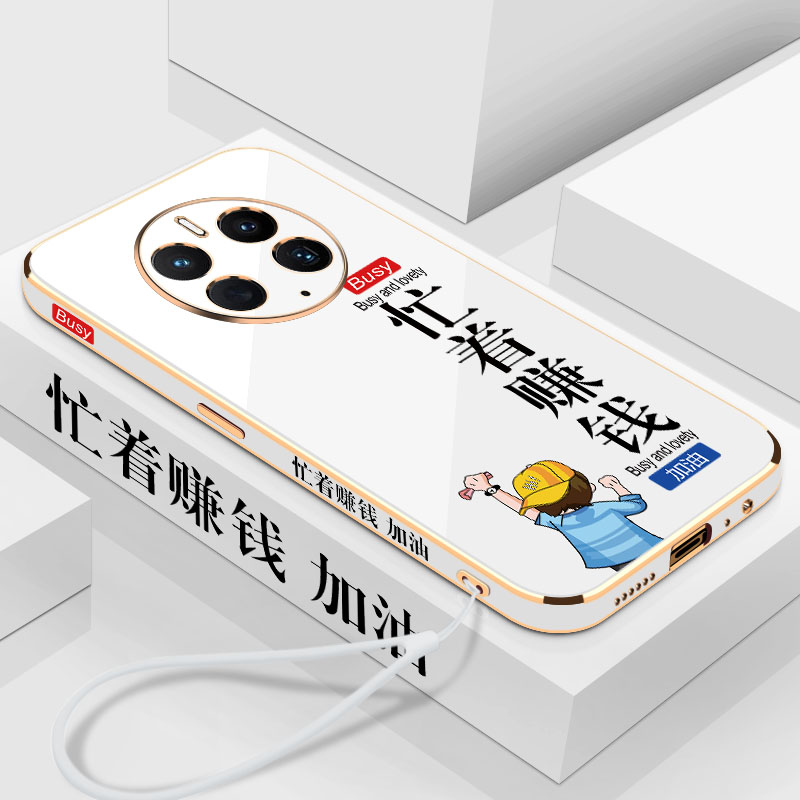 適用于電鍍忙著賺錢華為Mate50手機殼全包鏡頭50pro硅膠防摔mate50e超薄個性mate50Pro時尚創意軟殼保護套