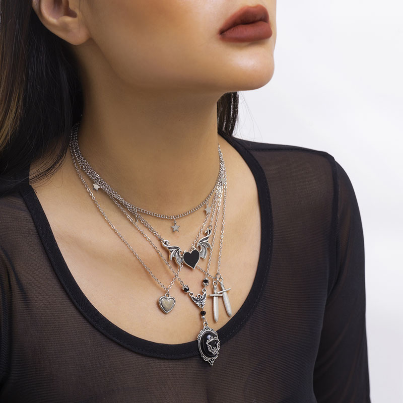 5件套匕首愛心吊墜項鏈套裝 歐美秋冬季新潮復古圣誕節裝飾品頸鏈