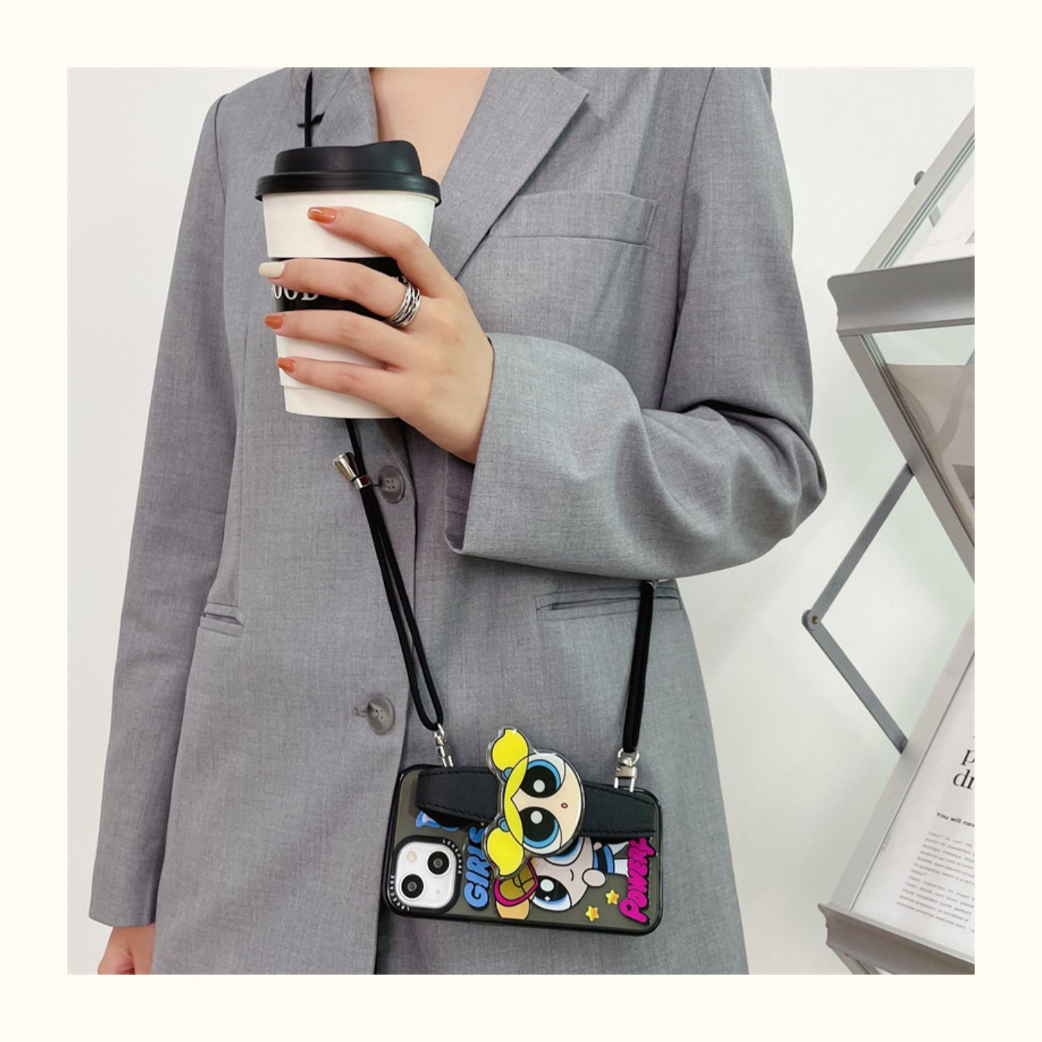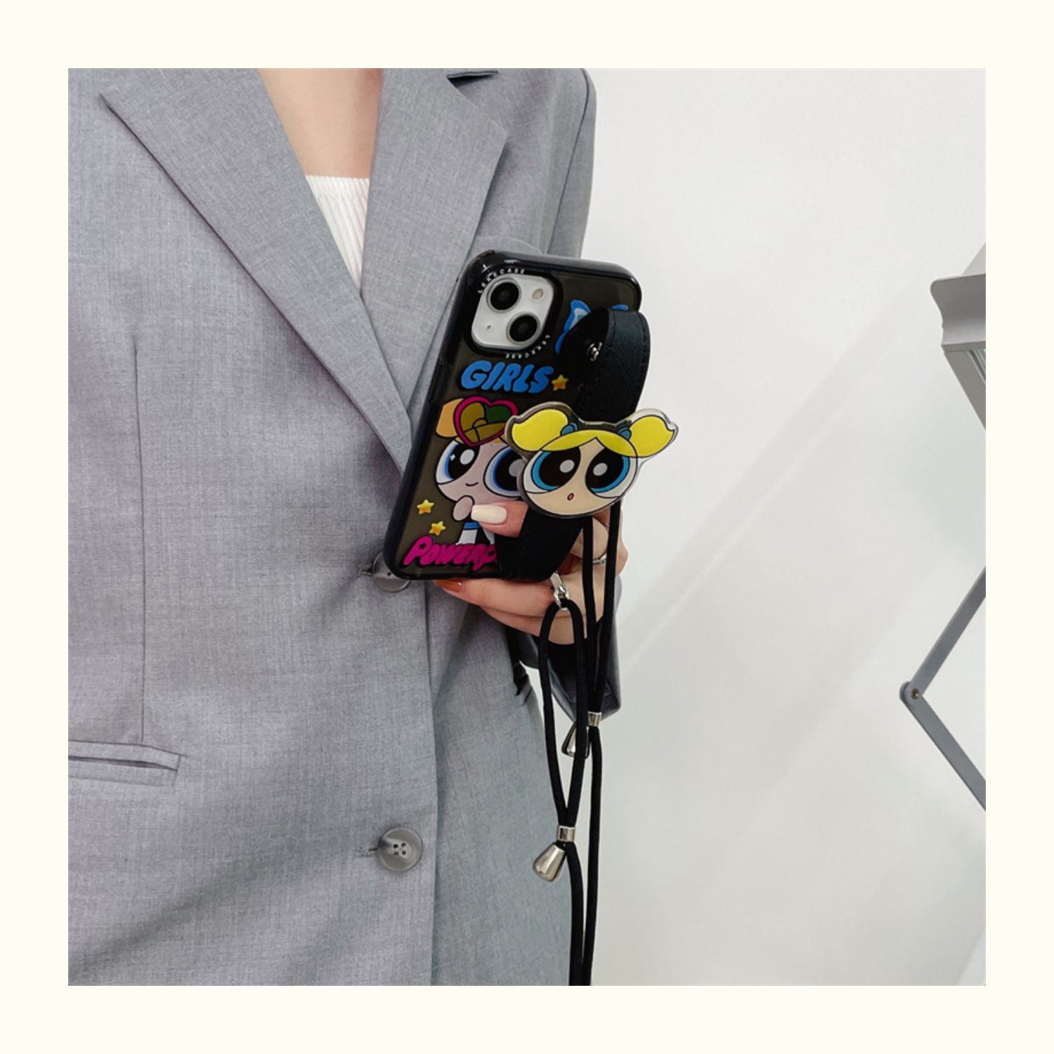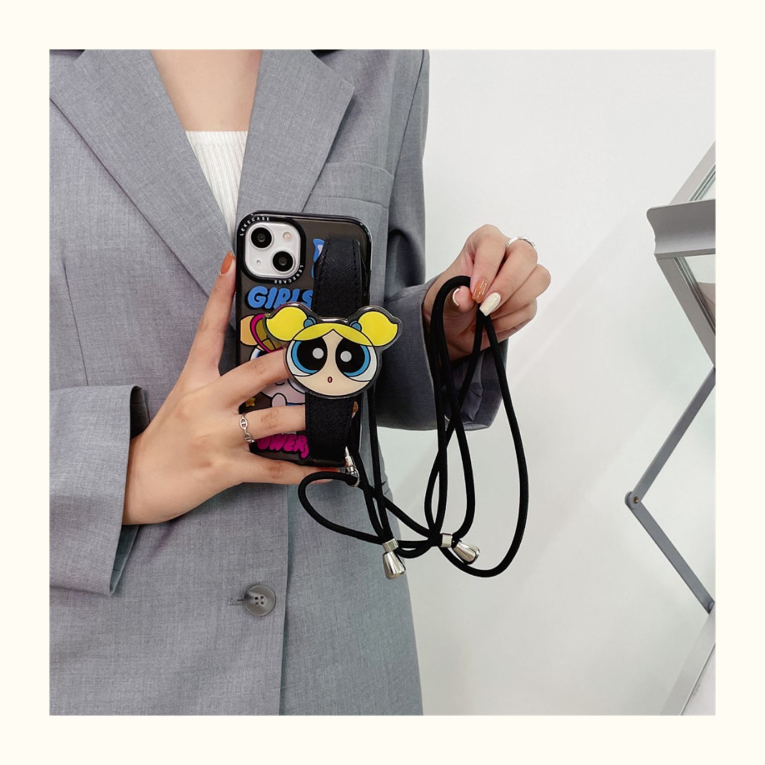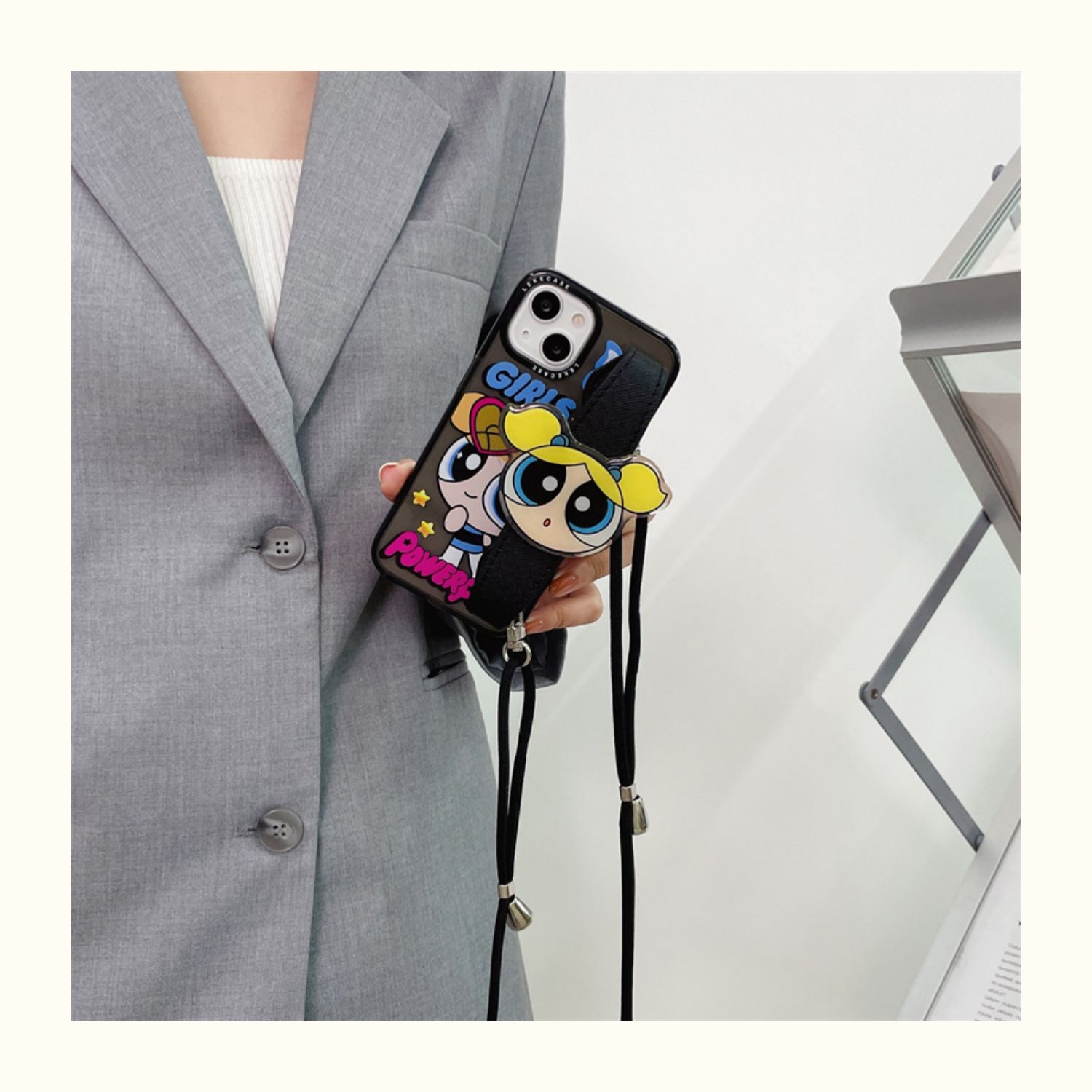 橙樹原創iphone14pro手機殼腕帶卡通飛天小女警適用蘋果13promax斜挎肩帶12帶掛繩11硅膠防摔xr可愛創意ins風