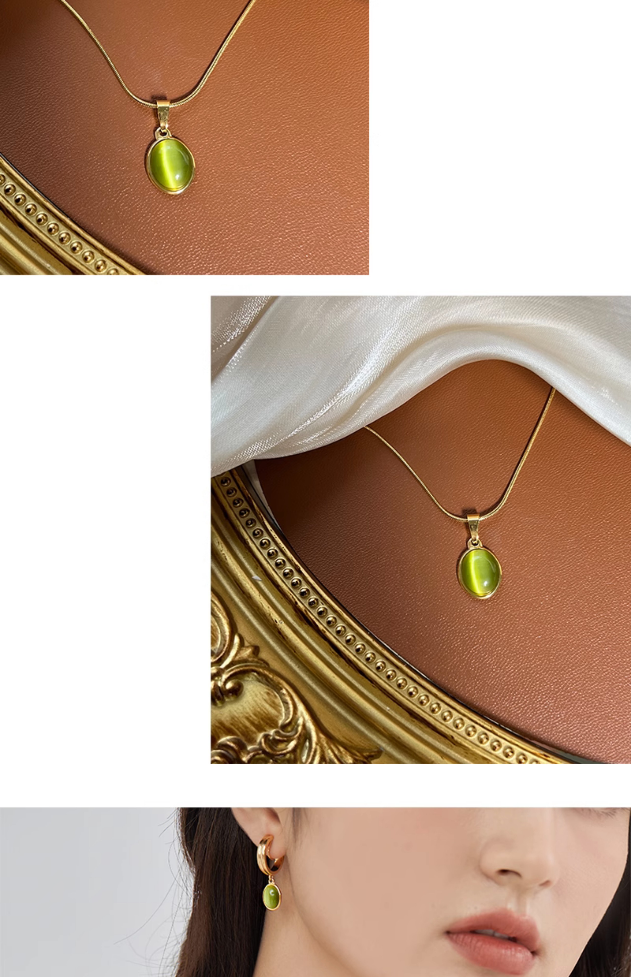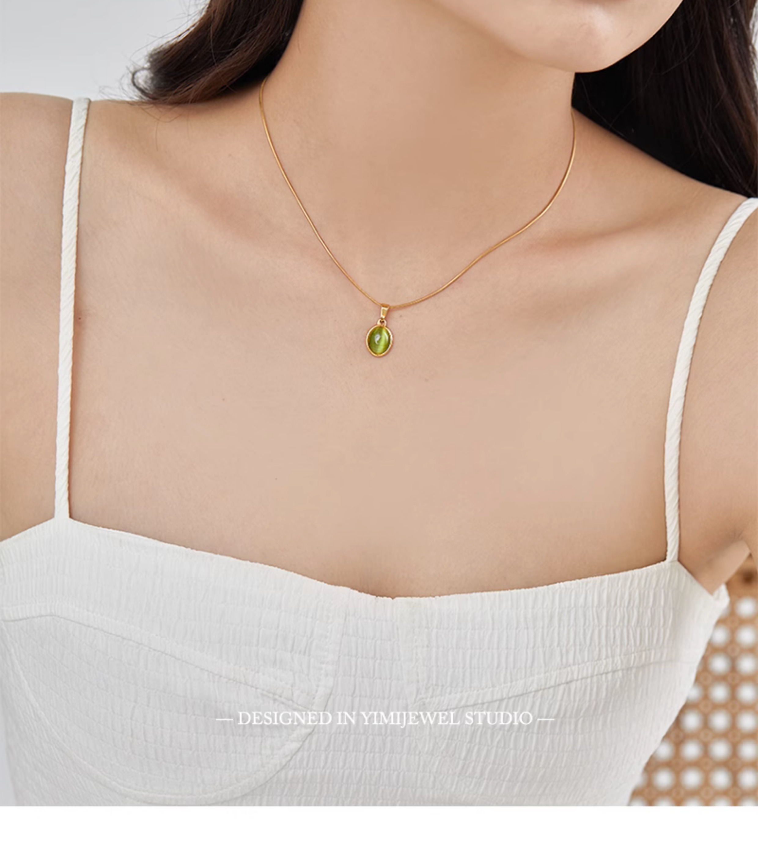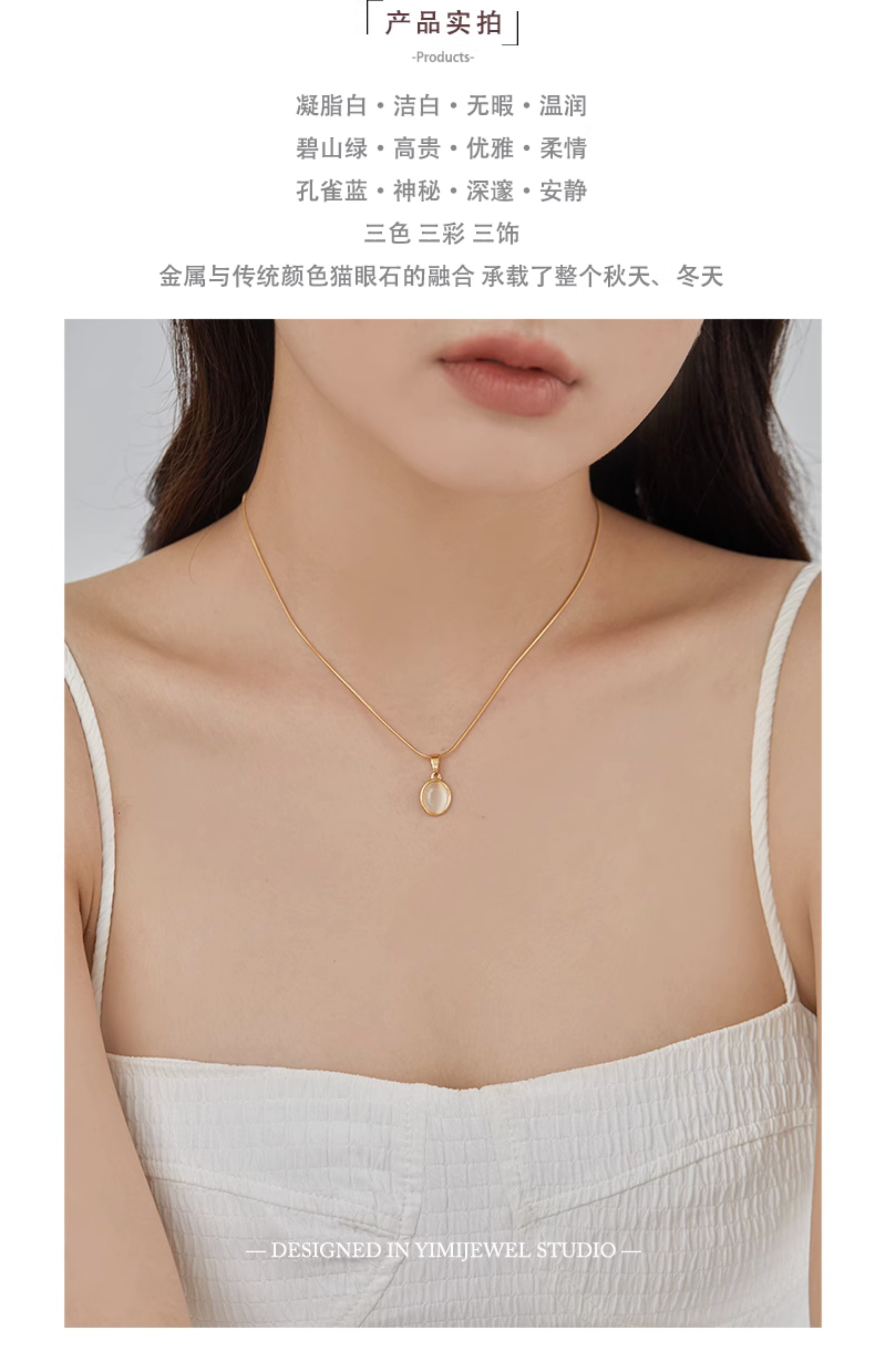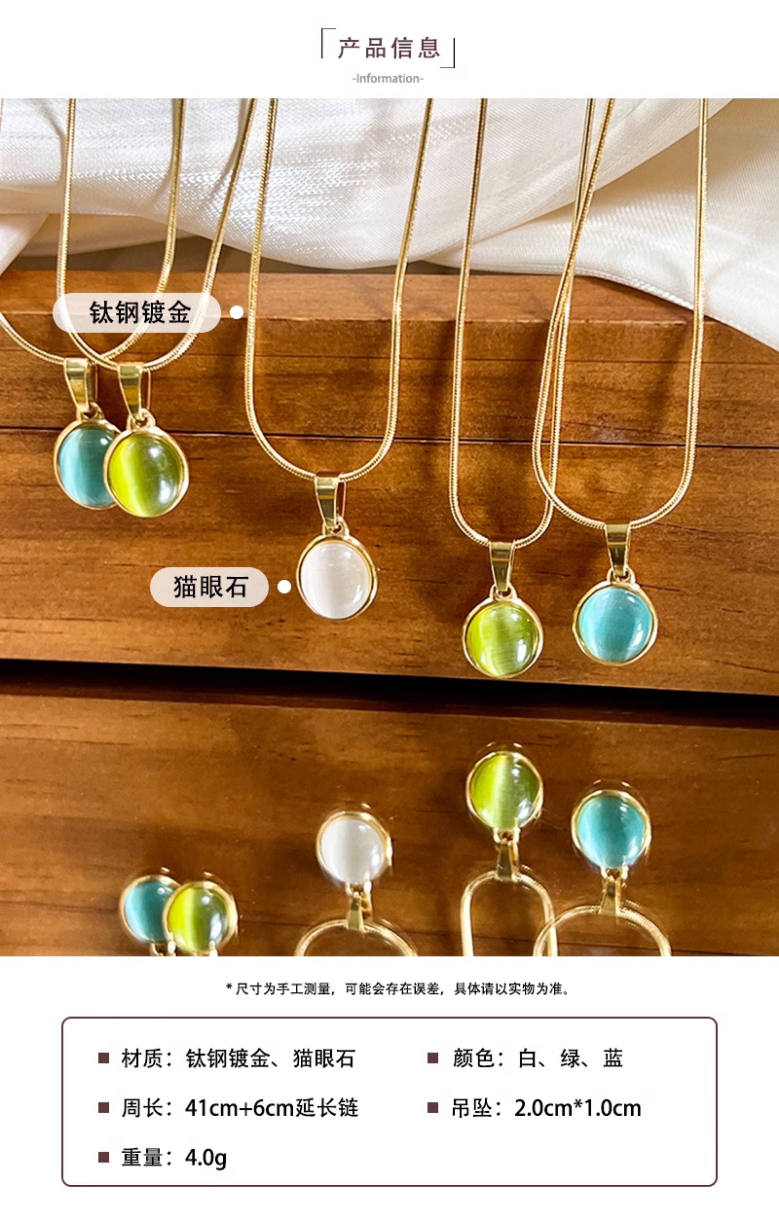 「多瑙河序曲」法式復古輕奢貓眼石吊墜項鏈可調節不掉色鎖骨鏈新