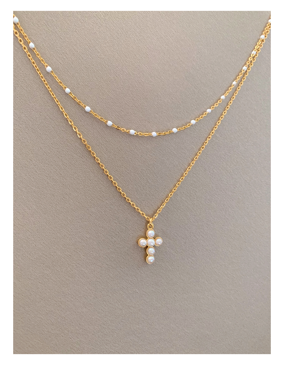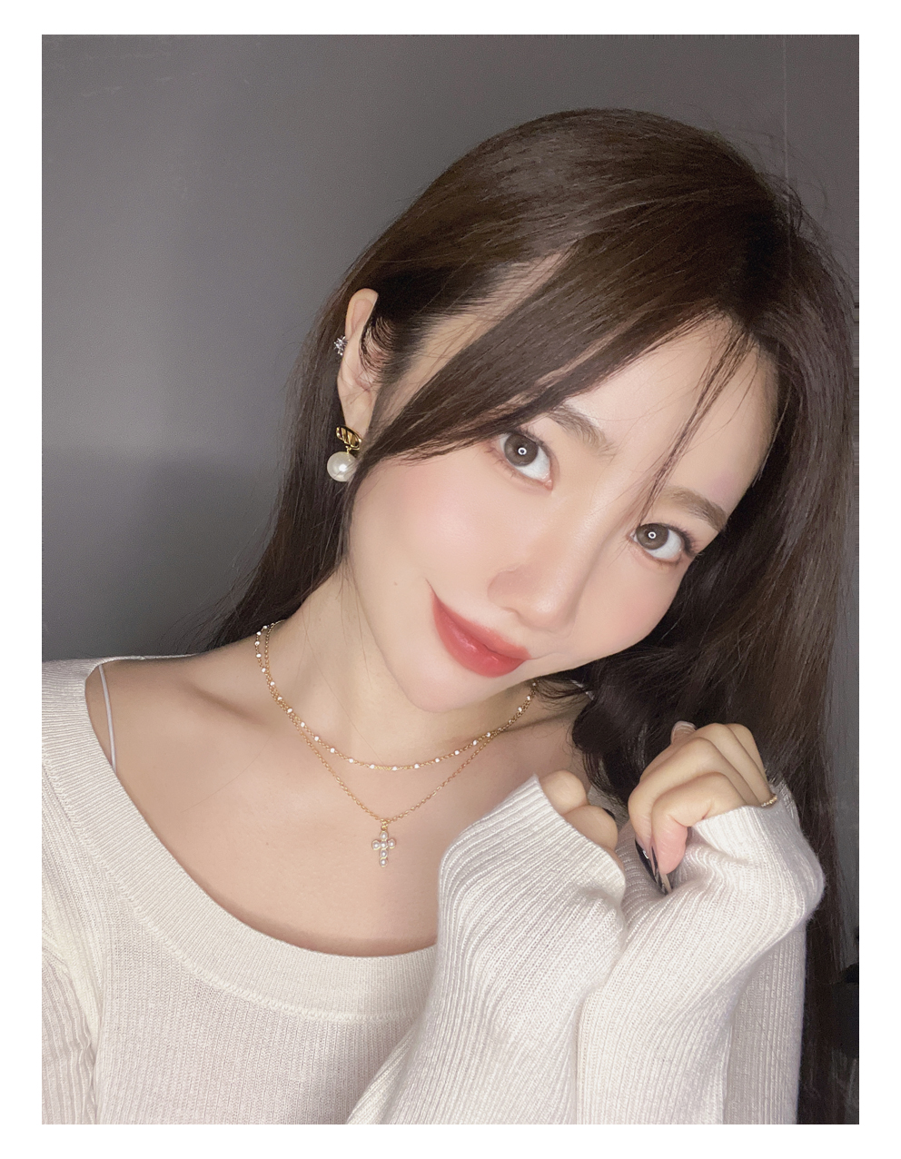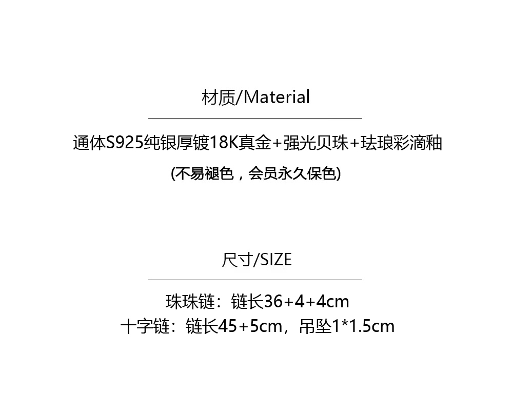 CHICWANG二十不惑同款S925純銀鍍18K金色白色珠珠十字架珍珠項鏈