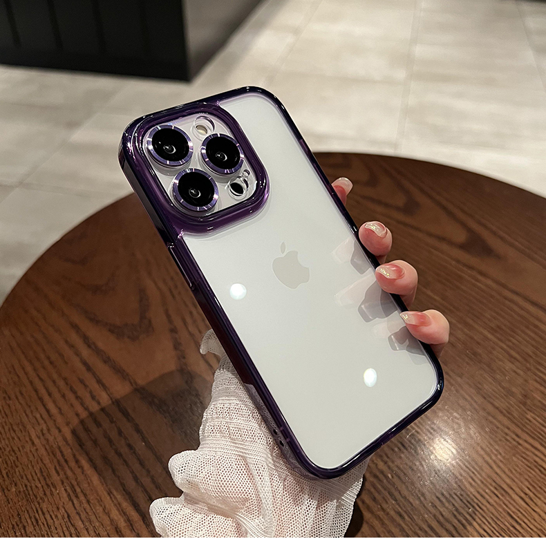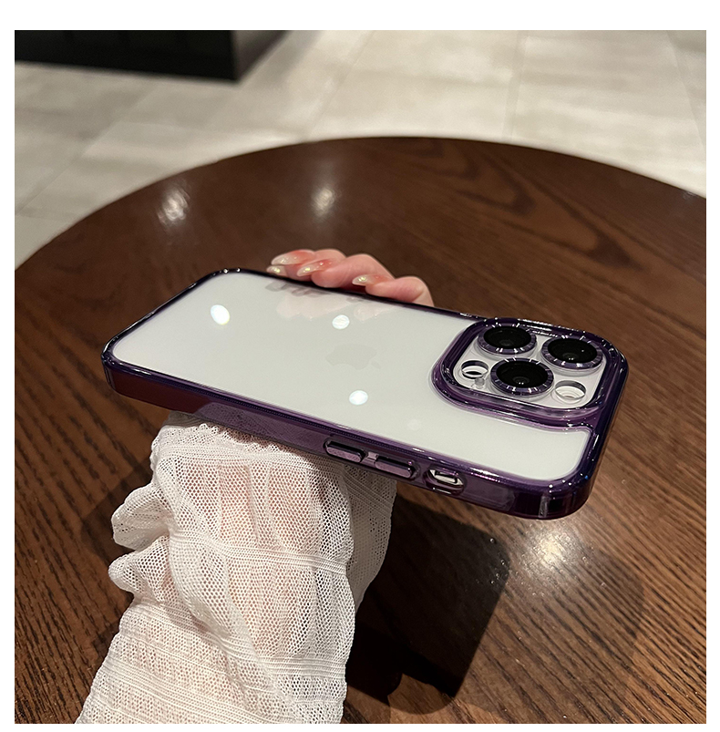 umj【真不發黃,金屬鏡框】簡約/高級透明適用iphone14手機殼蘋果14proMax新款13透黑12全包防摔11保護套男女