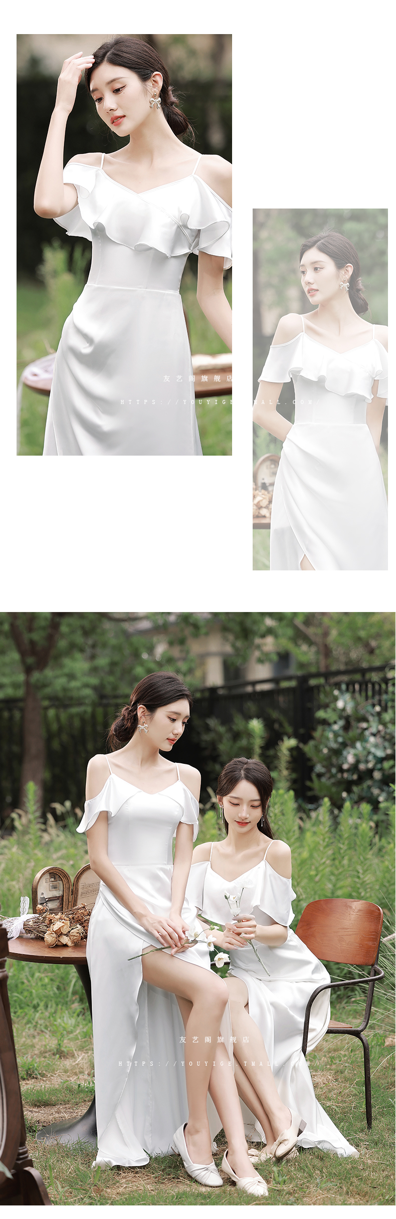 2022新款中長小個子白色仙女伴娘服