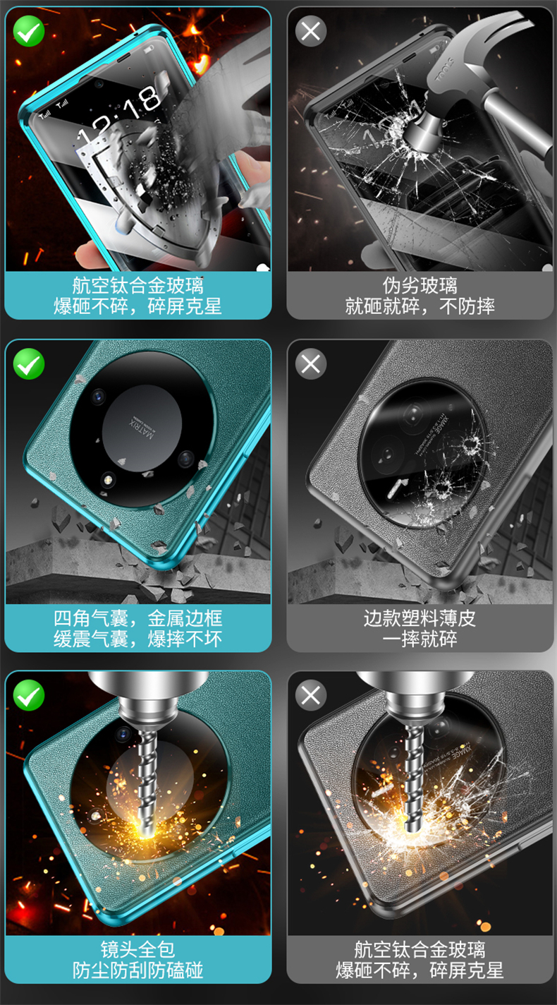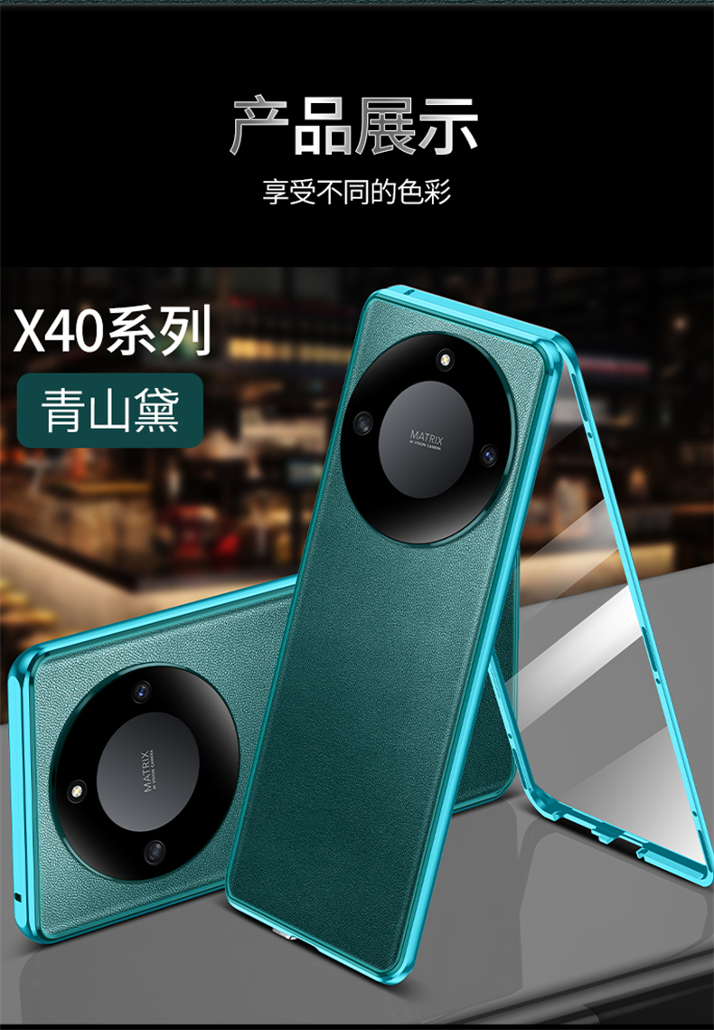 適用于榮耀x40手機殼網紅抖音honor x40i保護套素皮雙面玻璃磁吸創意殼膜一體金屬邊框