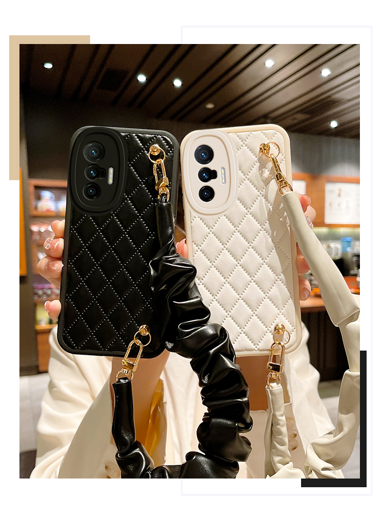 適用vivox70手機殼vivox80Pro小香風菱格高級感vivix90保護套X60全包x50歐美x30潮牌x27皮質手繩手提女款Por